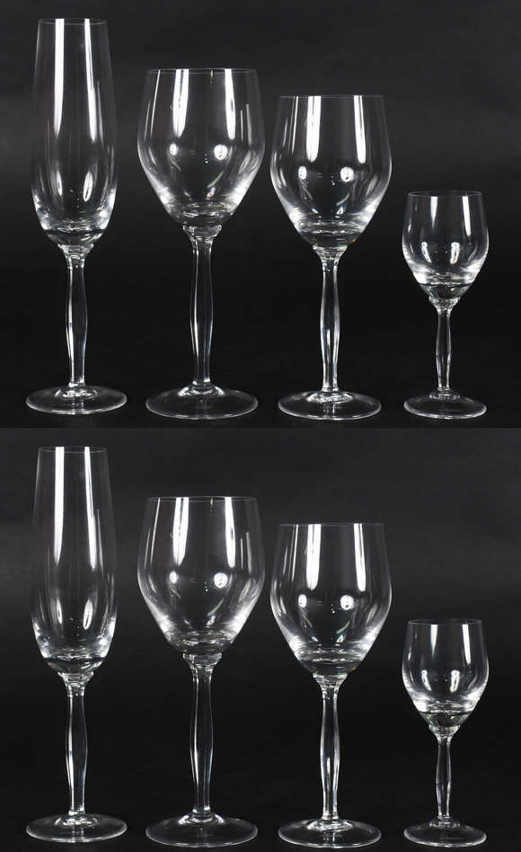 Serviço de cristal STRAUSS composto de 11 flutes , 8 cálices para água , 10 para vinho tinto, 9 para vinho branco e ...