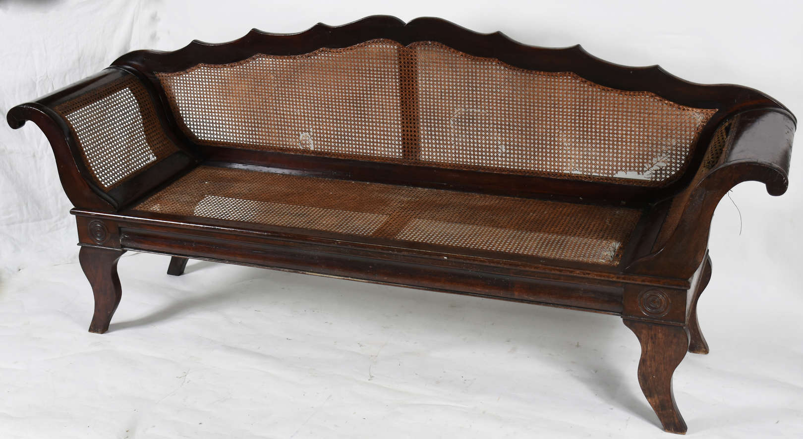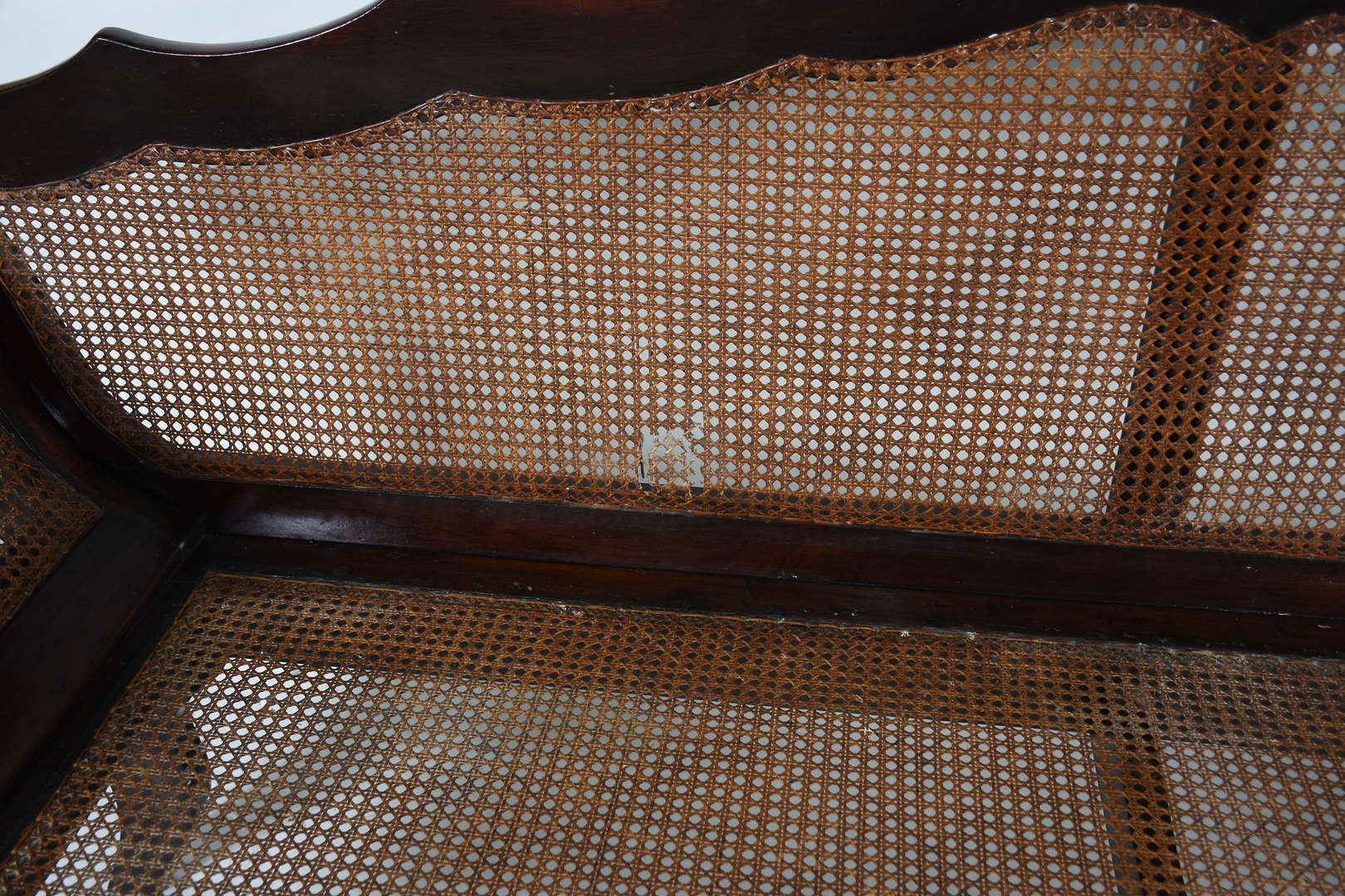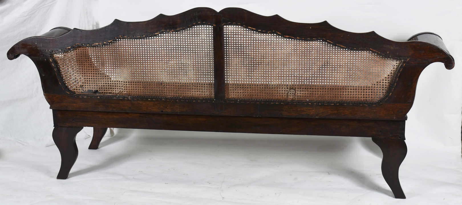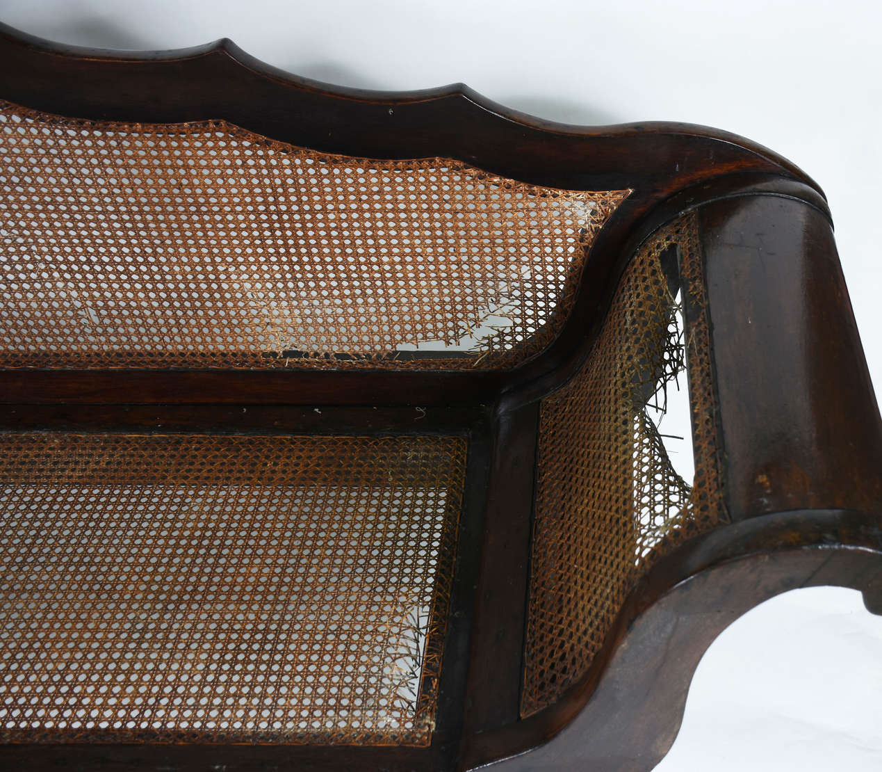 Banco de madeira nobre de 2 lugares , assento de palhinha (rasgada), detalhe no encosto com pinos torneados na borda...