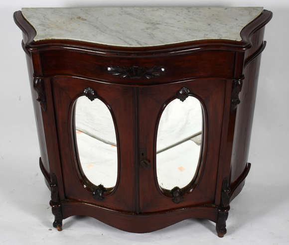 Dunquerque com 2 portas espelhadas , gaveta e tampo de mármore .