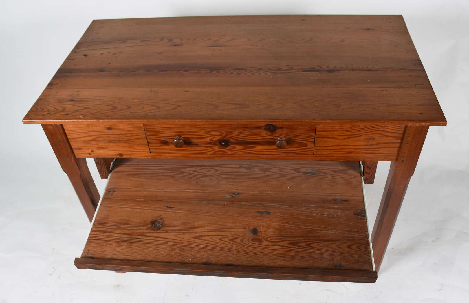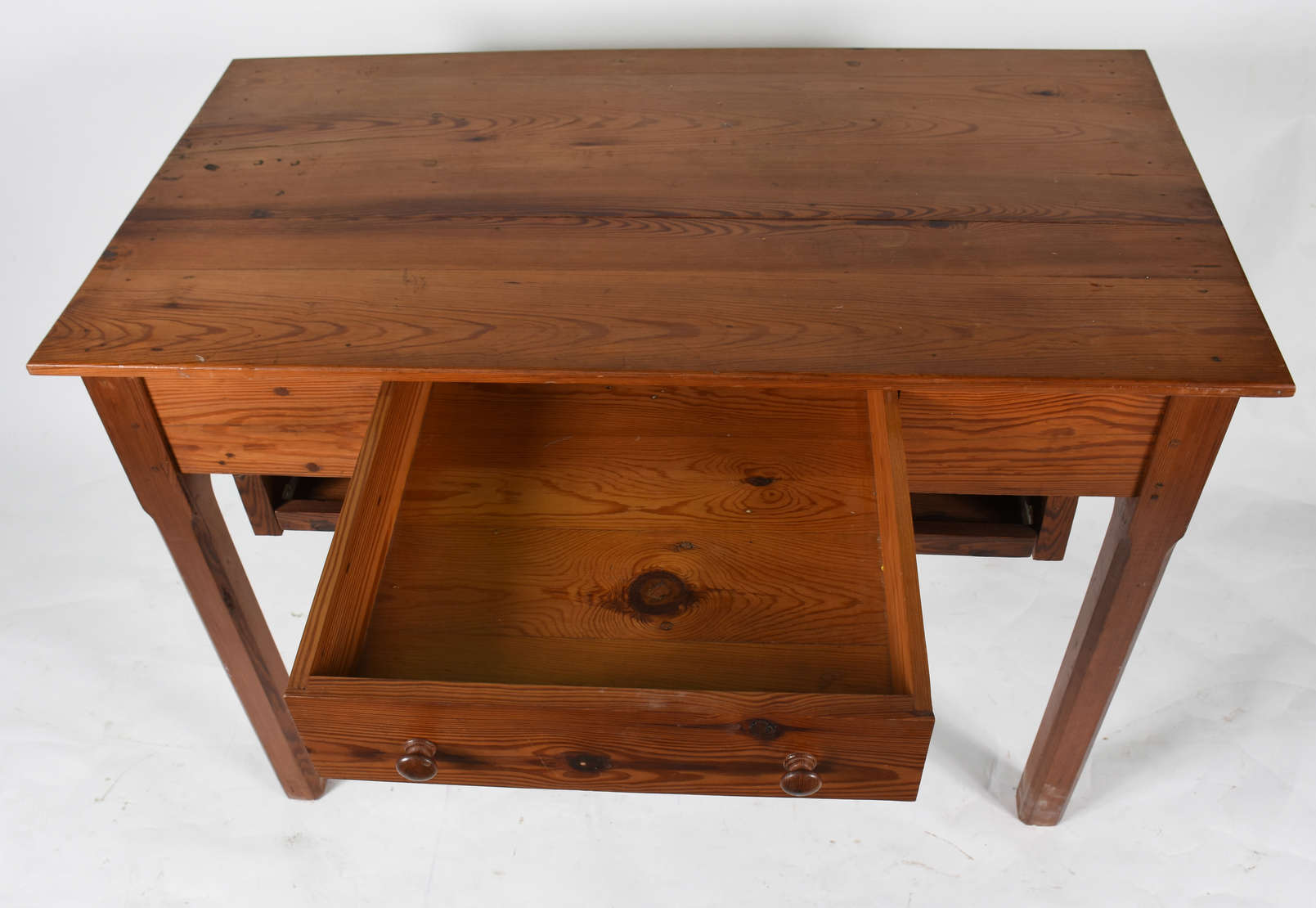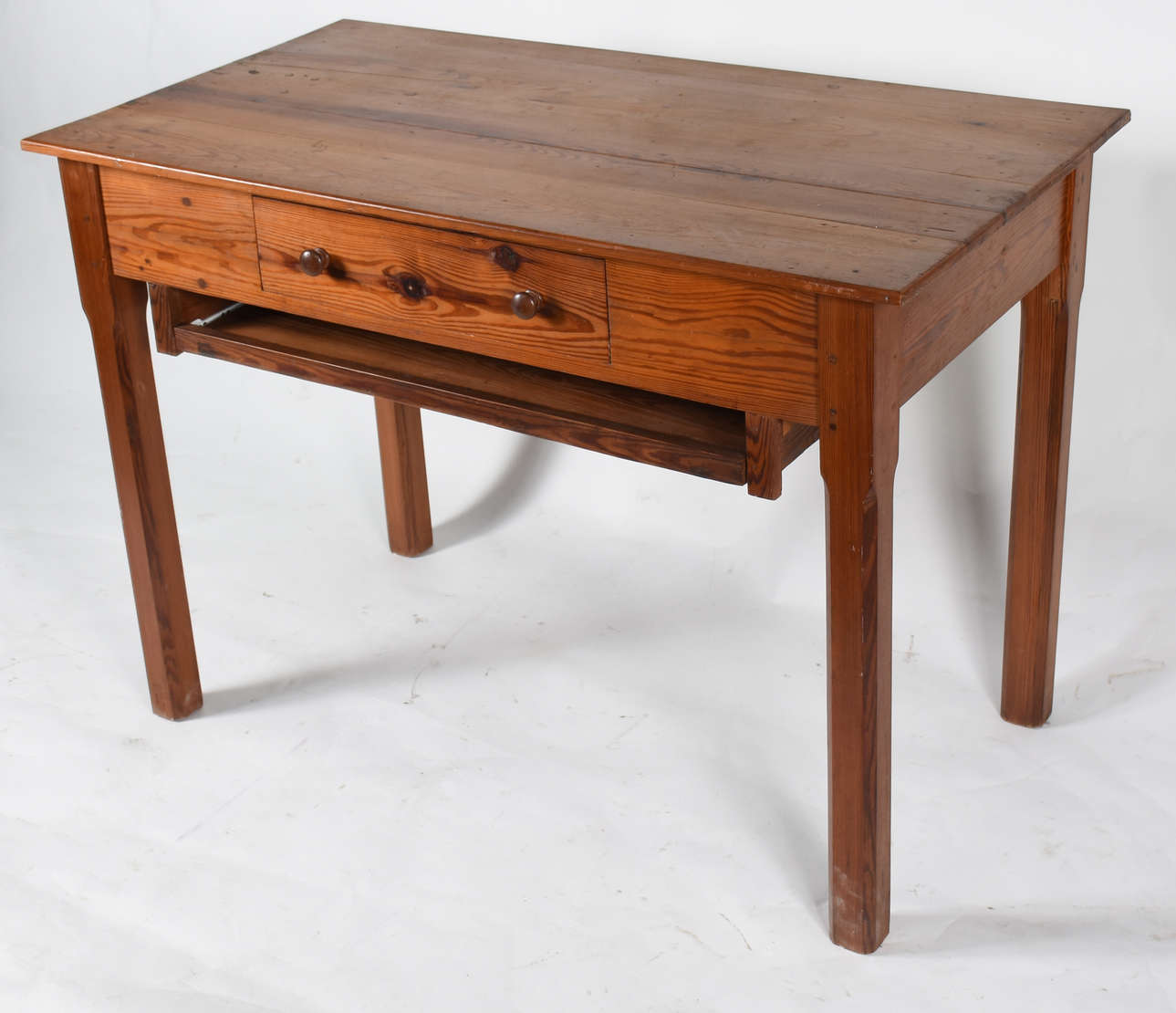Mesa de madeira com tampo de mármore e 2 gavetas .