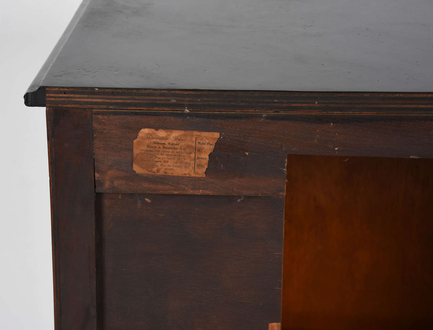 Aparador de madeira nobre, parte inferior com 2 portas e 2 gavetas almofadadas, tampo de mármore, alçada superior com...