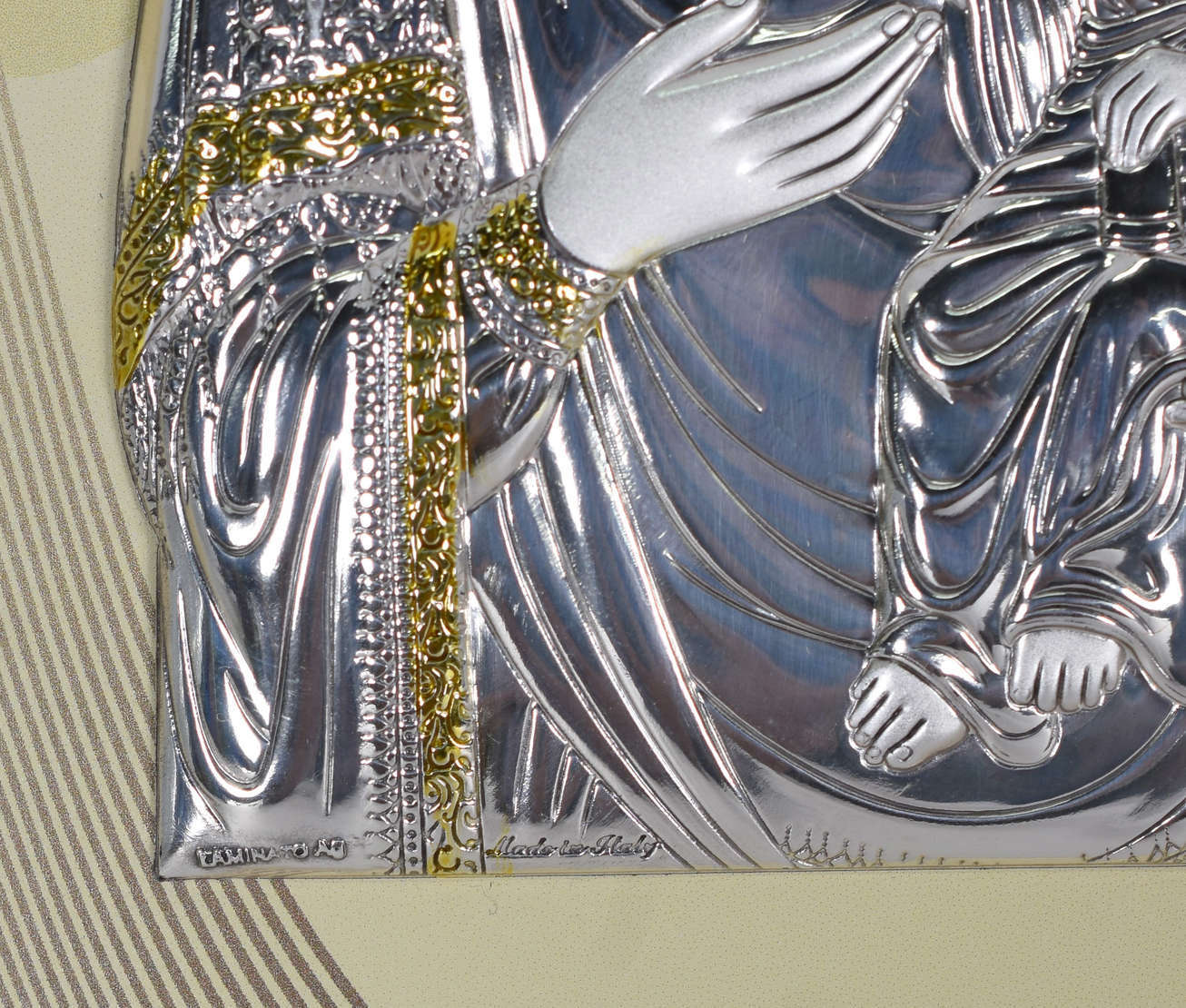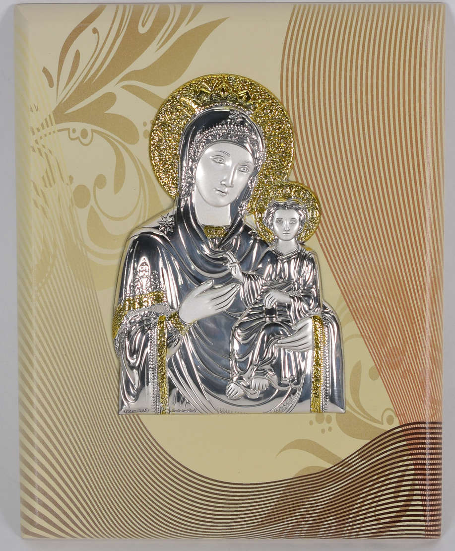 Ícone italiano de metal sobre placa de vidro.