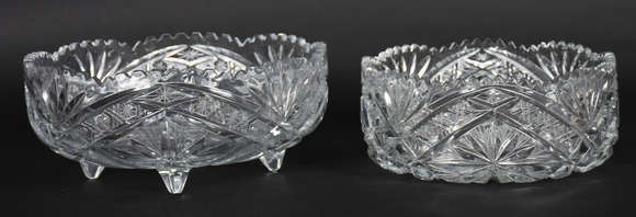 Duas fruteiras de cristal tcheco lapidado, feitio redondo, uma delas com pézinhos.
