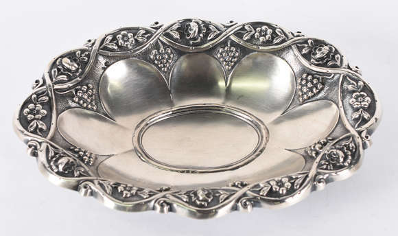 Fruteira de prata portuguesa contraste Javali com flores em relevo . ( por questão de segurança a peça não se encontr...