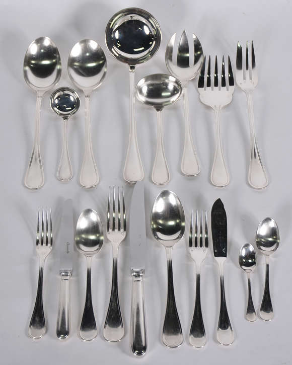 Faqueiro Christofle modelo Albi , de metal espessurado a prata, composto de 12 facas, 12 garfos e 12 colheres grandes...