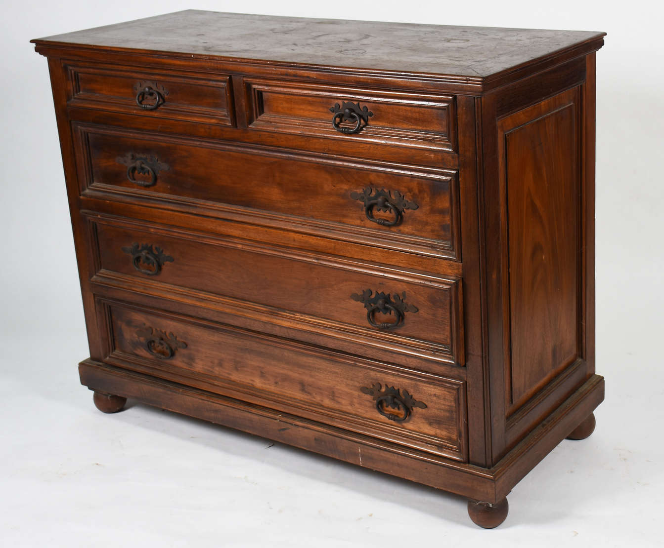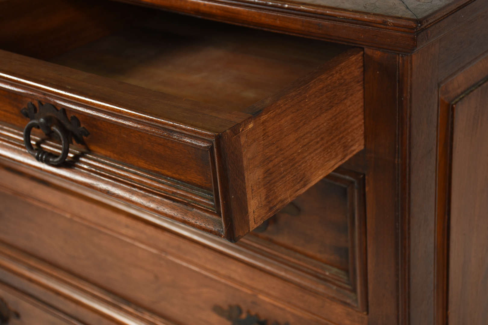 Aparador estilo Império com tampo de mármore verde e detalhes de metal dourado . Platô inferior recortado.