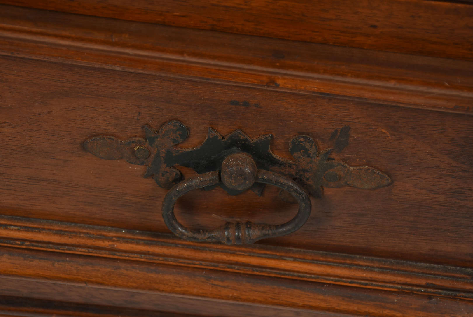Arca estilo frances de madeira nobre parquetada, duas portas com medalhões florais marchetados (placa de madeira ao f...