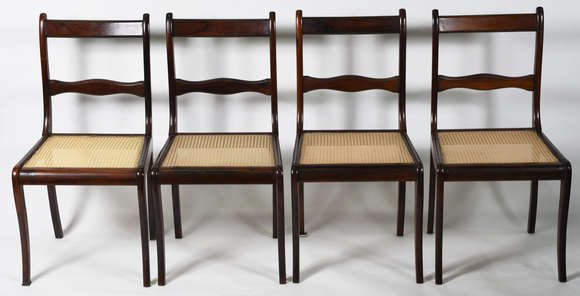 Conjunto de 4 cadeiras para sala de jantar de madeira nobre, assentos de palhinha sintética (uma delas com uma pernas...