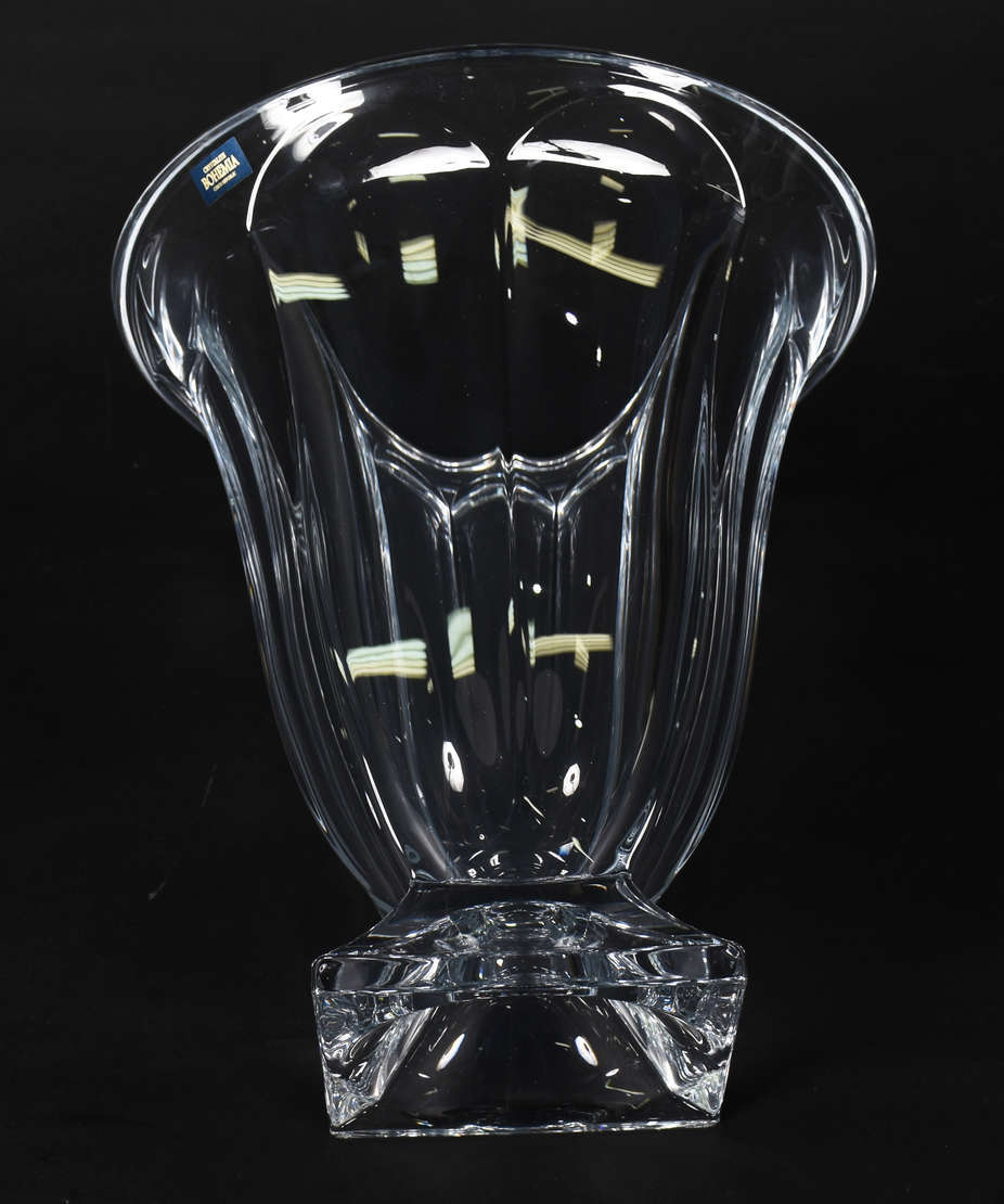Duas peças de cristal, sendo Vaso para flores e pequeno tinteiro.