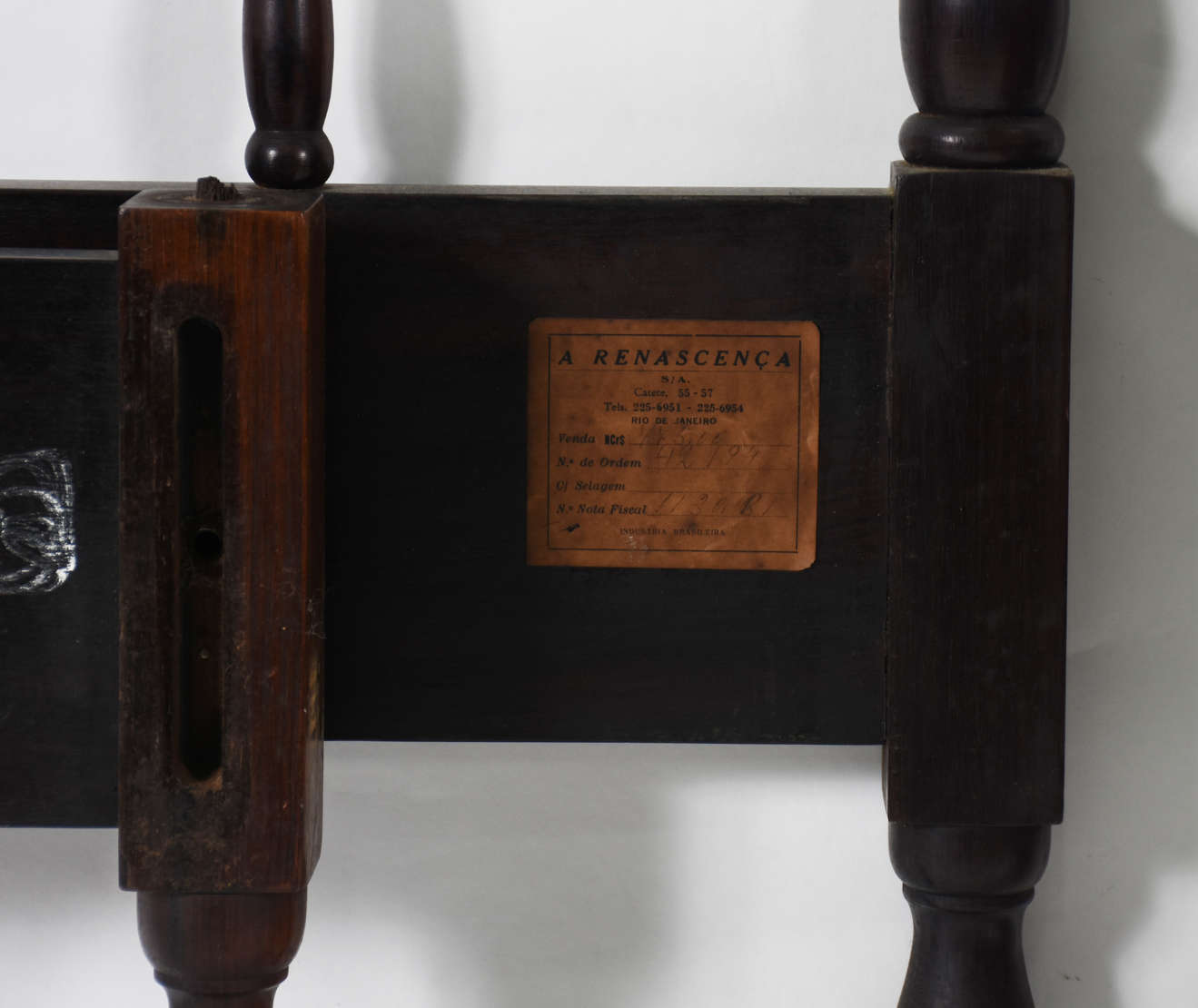 Pequeno armário de madeira nobre, estilo Art Nouveau, porta com figura de pássaro. Interior com prateleira.
