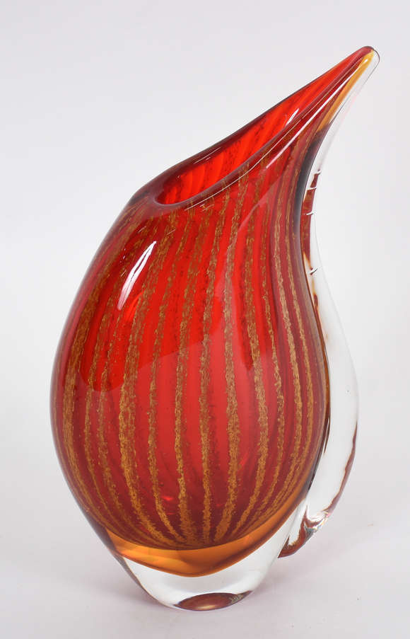 Vaso de Murano vermelho , borda com ponta.( algumas marcas no vidro .