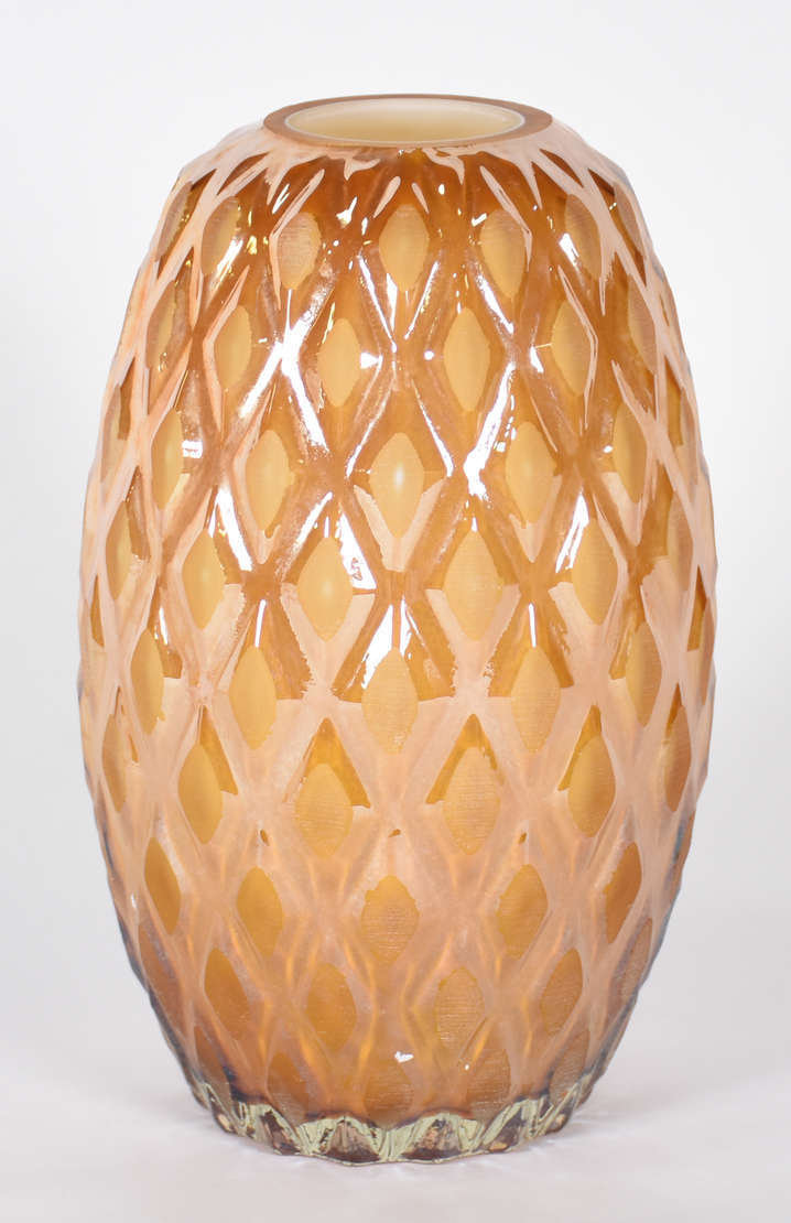 Vaso de Murano vermelho , borda com ponta.( algumas marcas no vidro .
