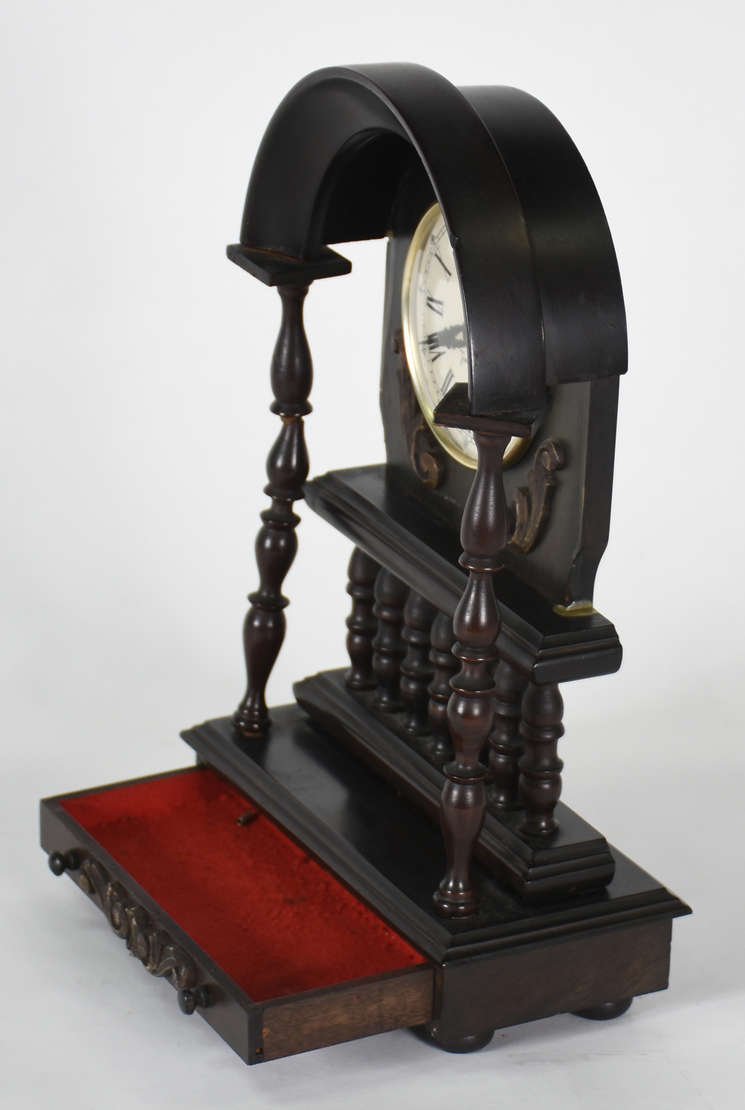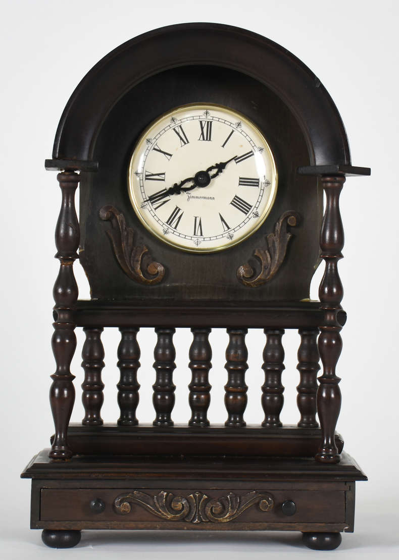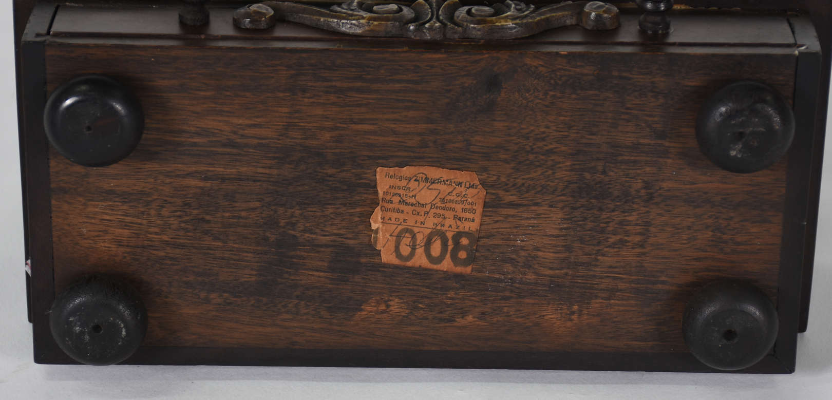 Espelho com moldura de madeira e florão superior entalhado.