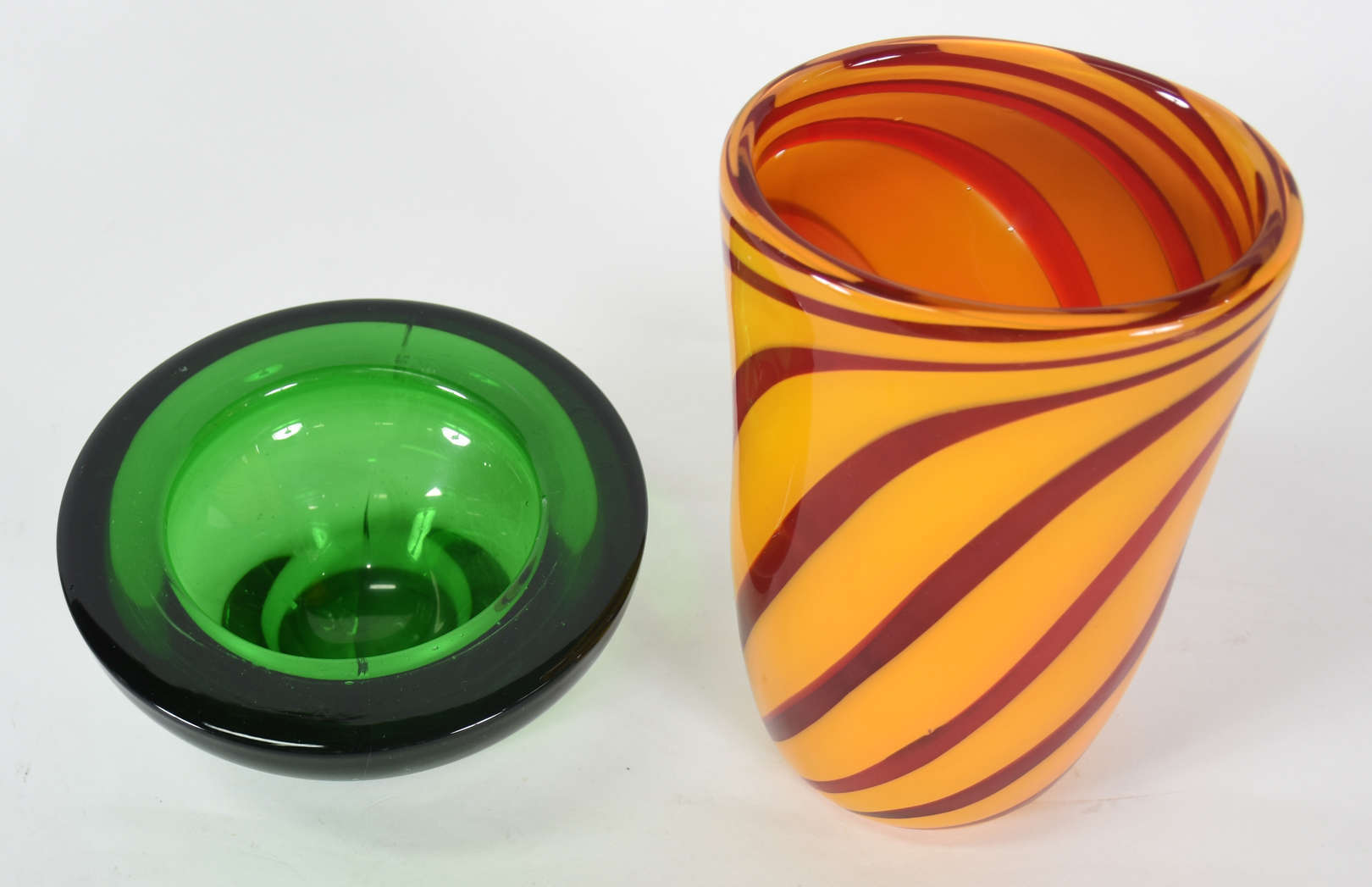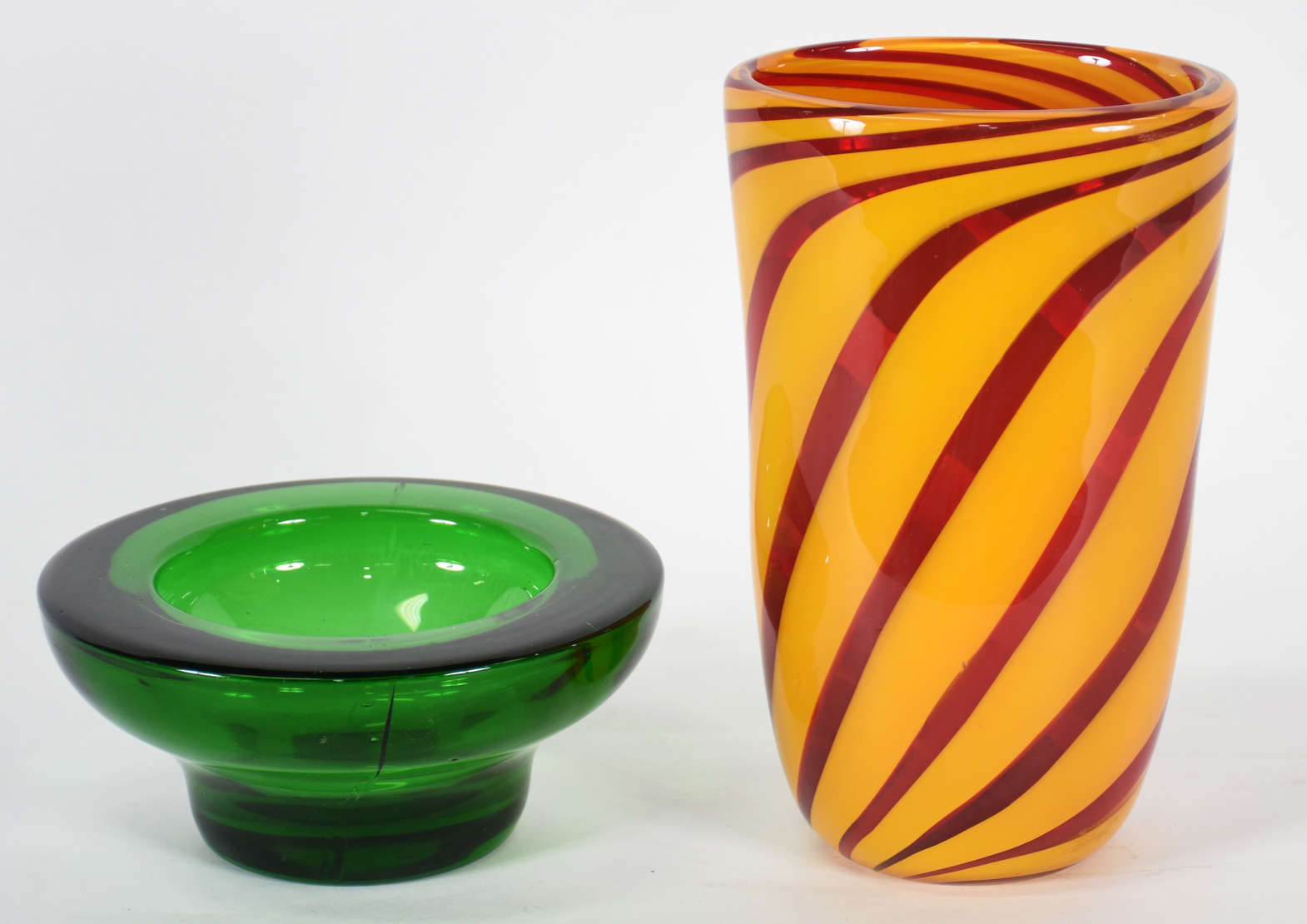 Duas peças de cristal, sendo Vaso para flores e pequeno tinteiro.