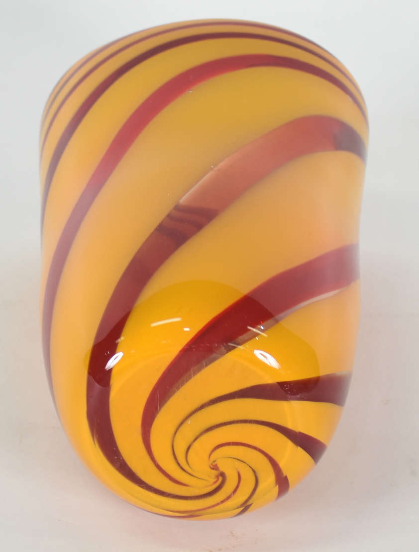 Vaso de Murano vermelho , borda com ponta.( algumas marcas no vidro .