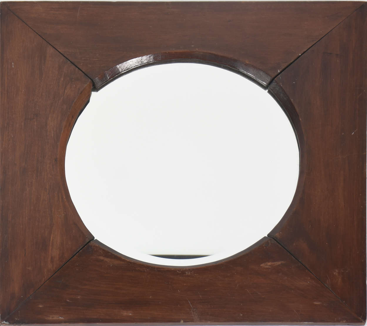 Espelho com moldura de madeira e florão superior entalhado.