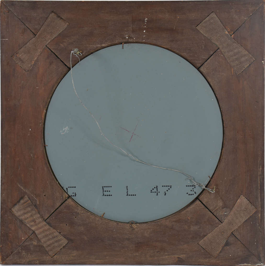 Ícone italiano de metal sobre placa de vidro.
