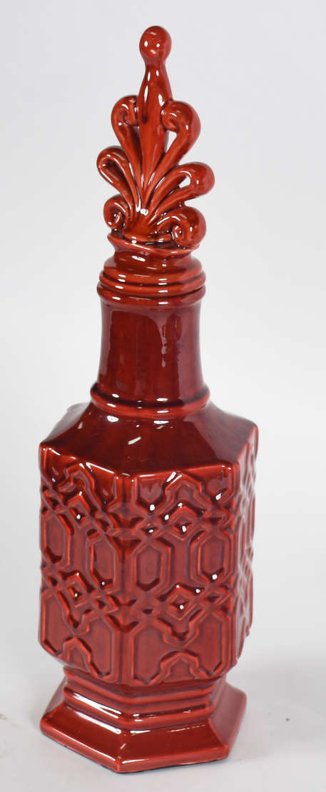 Vaso de Murano vermelho , borda com ponta.( algumas marcas no vidro .