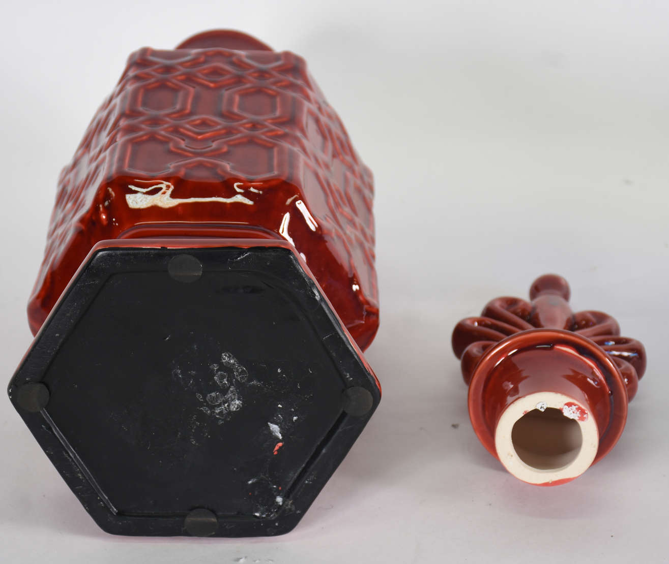 Vaso de vidro trabalhado na cor âmbar, " abacaxi " .