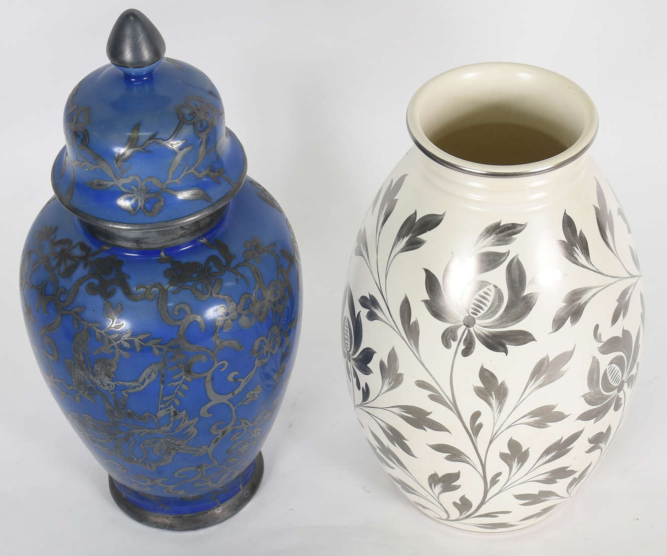 Duas peças de cristal, sendo Vaso para flores e pequeno tinteiro.