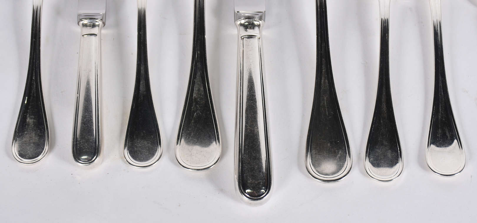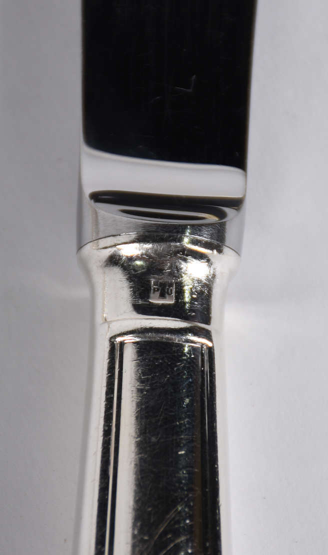 Conjunto de talheres, sendo 6 faquinhas , 6 colheres e 6 garfinhos de sobremesa de prata Sterling 925 norueguesa com ...