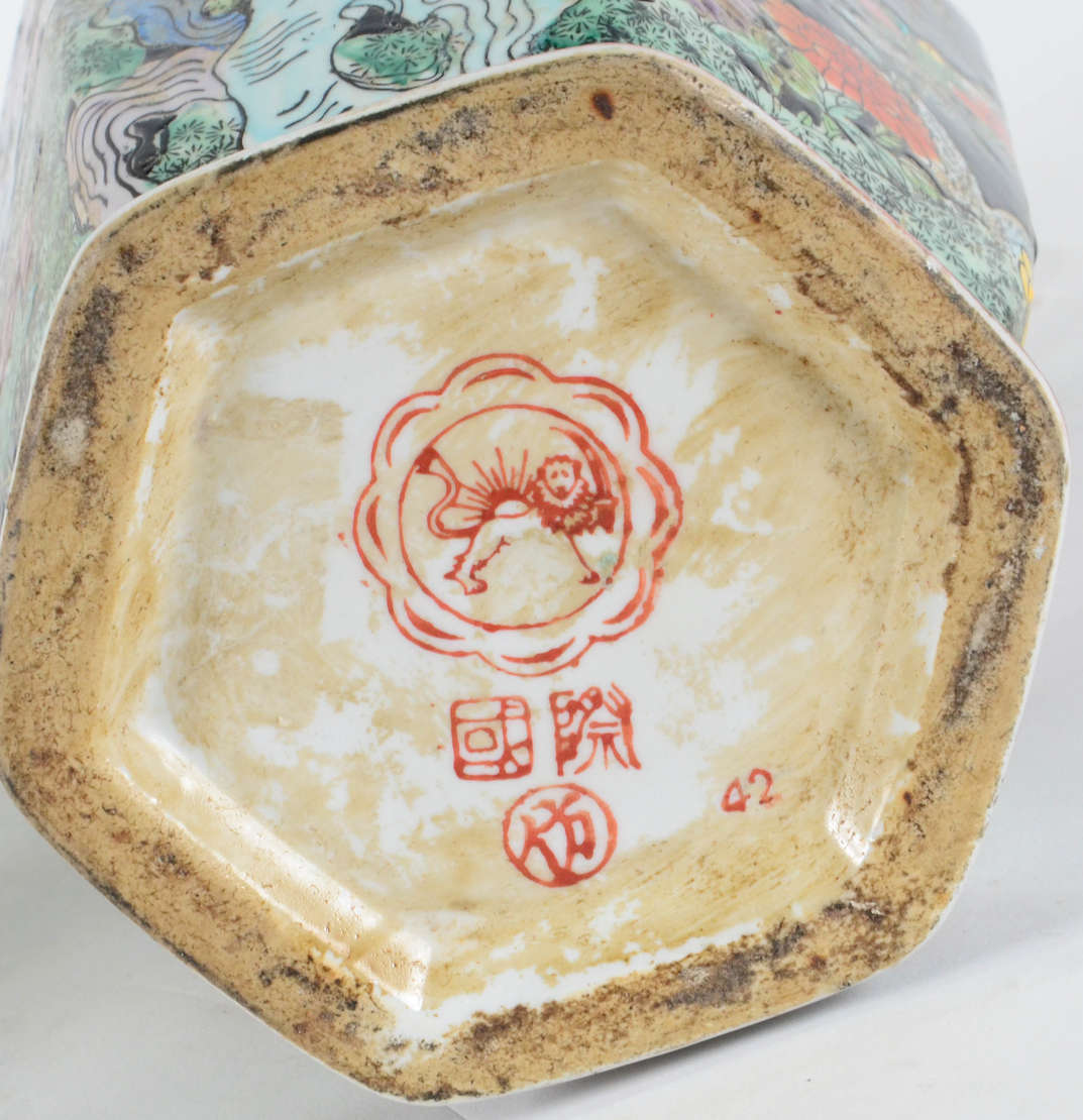 Jarrão Chinês – Porcelana chinesa – Decoração dita Mandarim, nas cores da palheta “Família Rosa” – Com restauro apena...