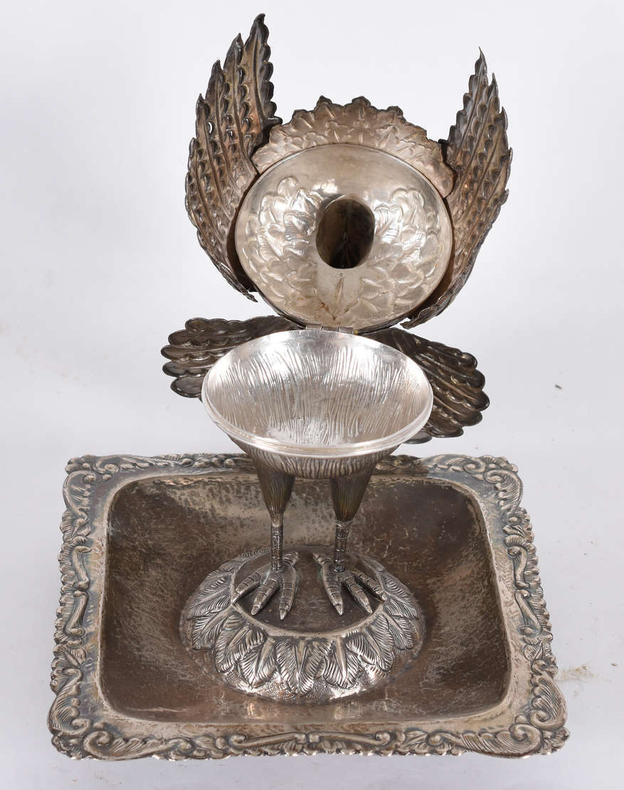 BORDALO PINHEIRO – Pichorro de barro – Decoração com aplicação de prata portuguesa sobre barro – Fabricação da manufa...