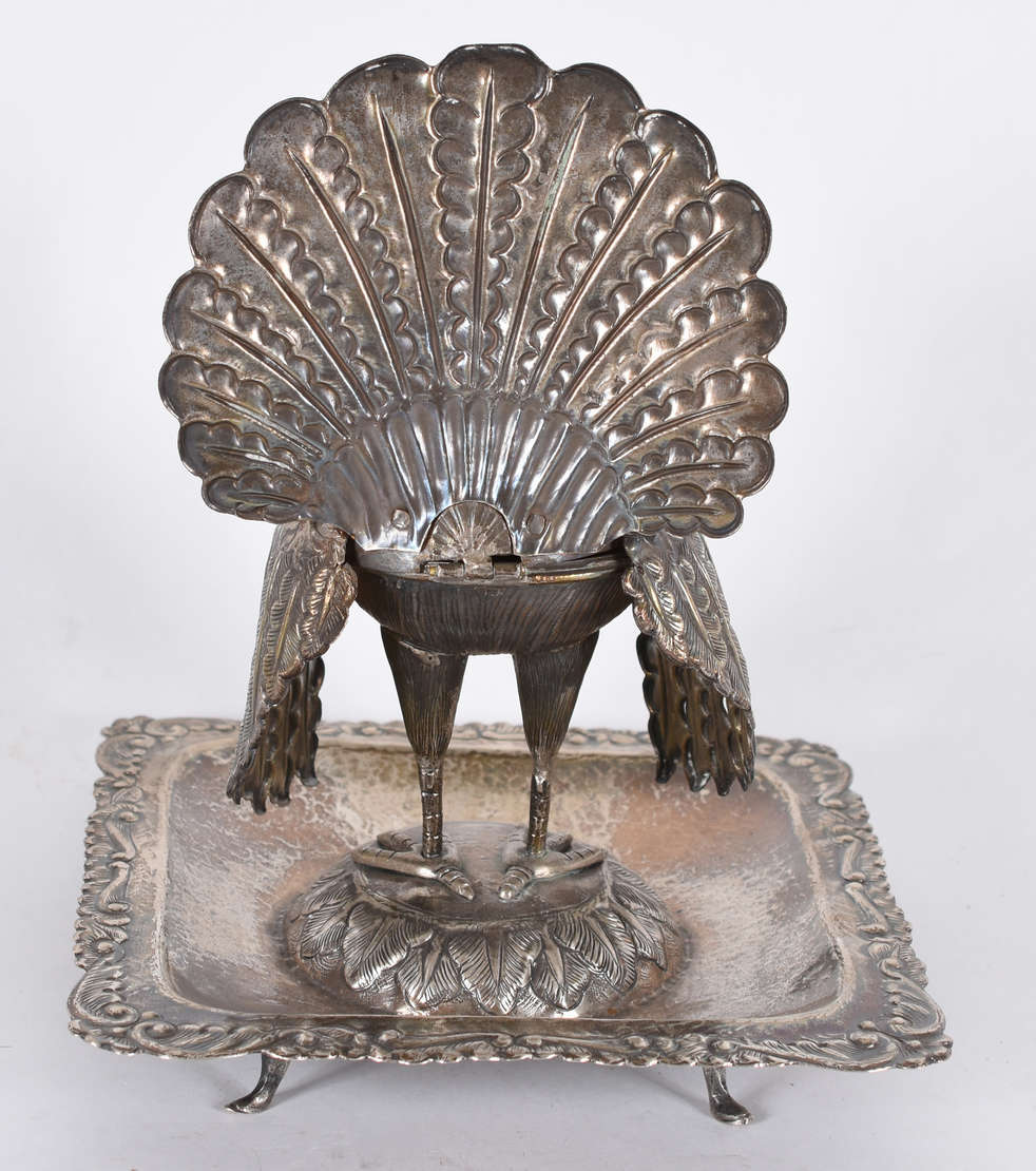 Tinteiro “Art Nouveau” – Bronze francês pitado em dourado – Decoração com recipiente em forma de romã, com bandeja e ...