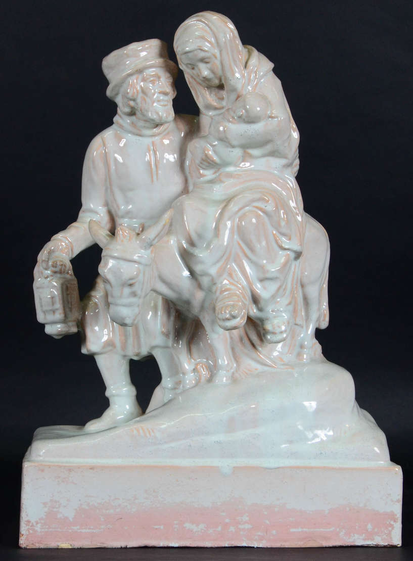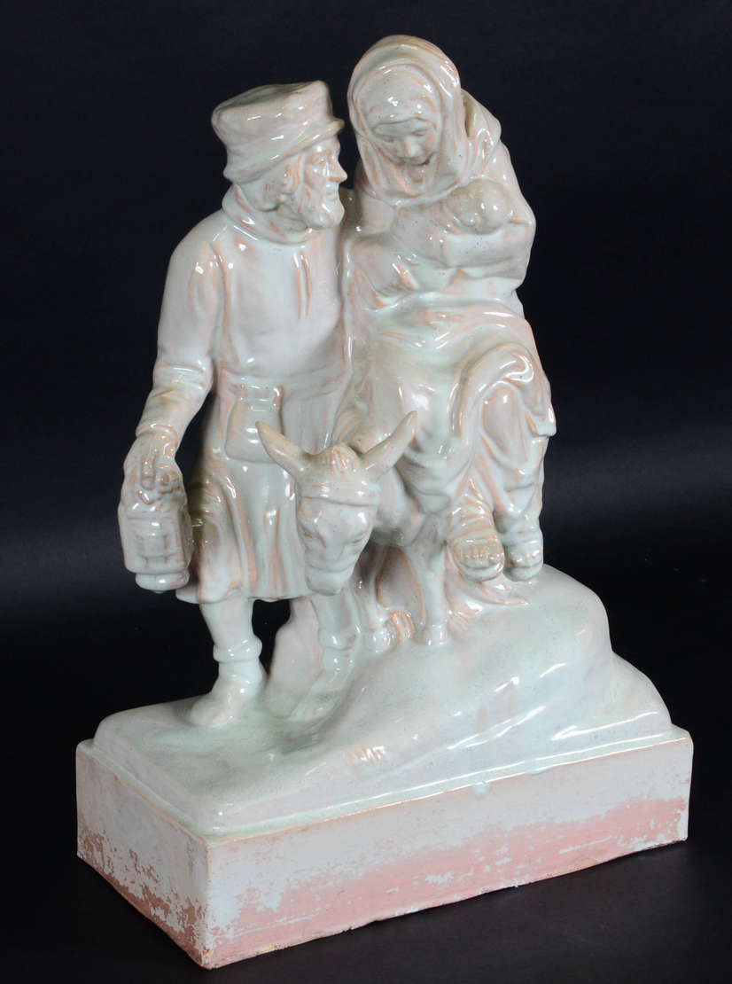 Arte sacra- Presépio com imagens de menino Jesus , Maria e José - Pedra sabão , parcialmente policromada . Minas Ger...