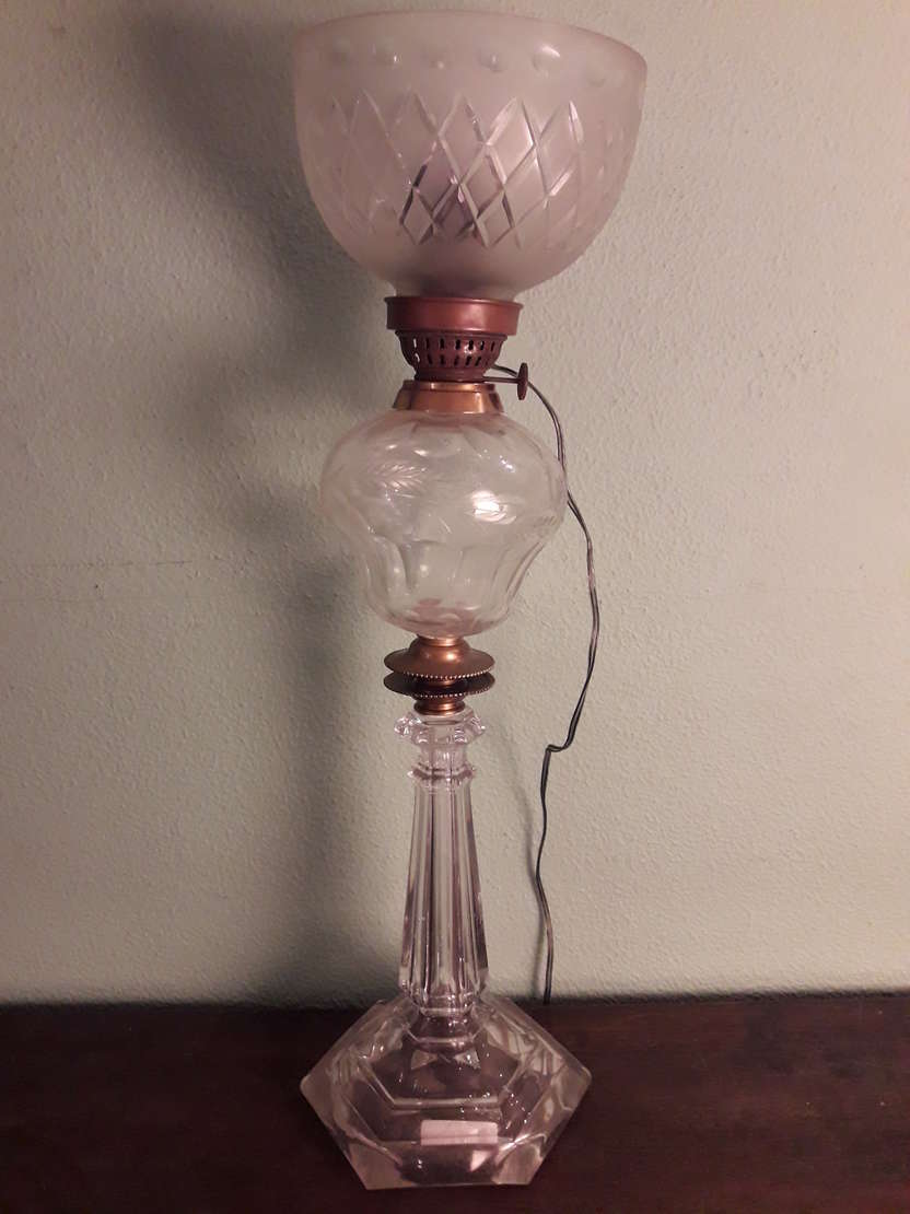 Lampião – Base em cristal Baccarat com pingentes, sem manga . França – Século XIX