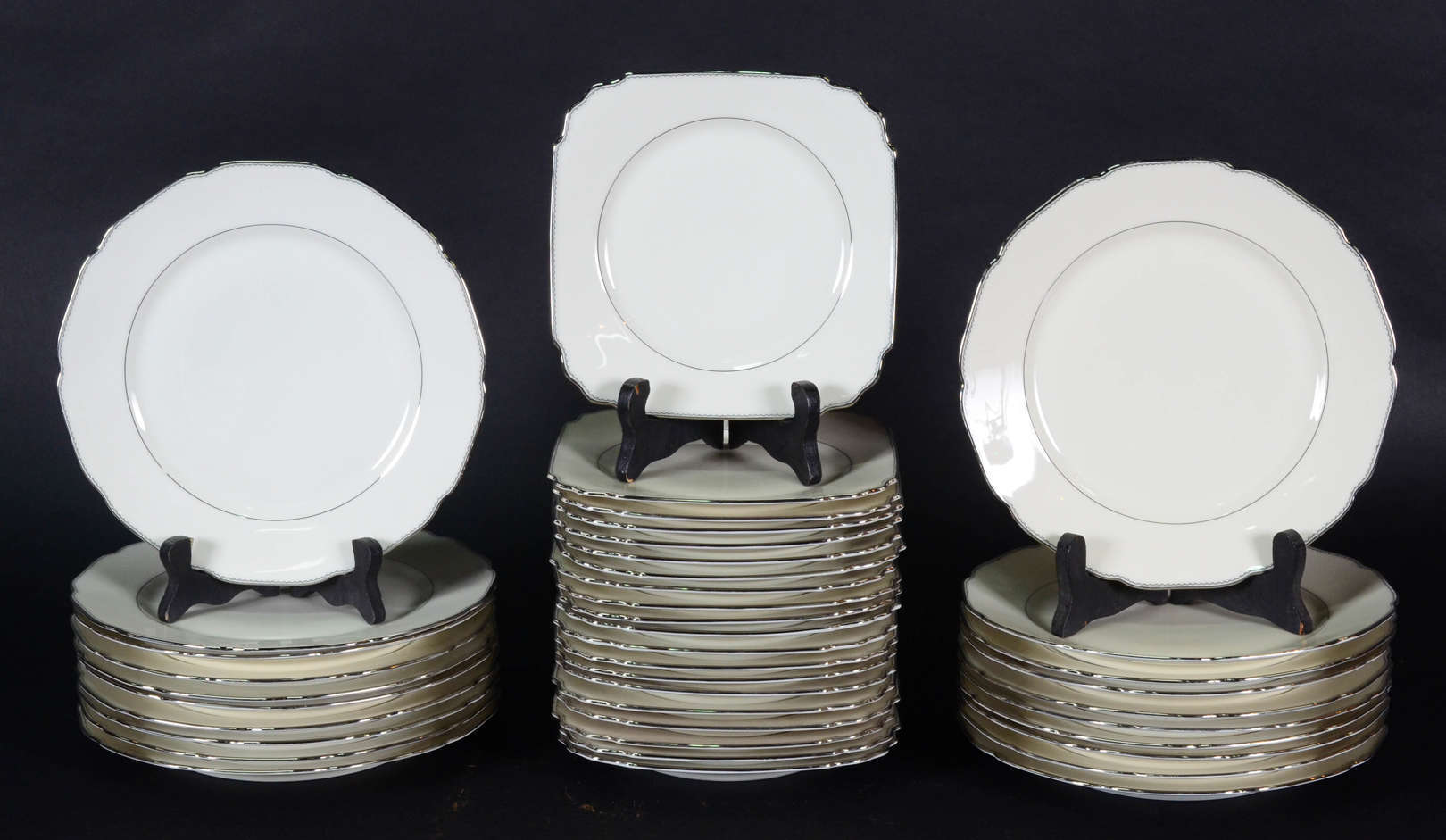 Faqueiro “Art Deco”- “Silver plate” Eberle Decoração gomada nas extremidades das peças. A saber: 12 facas, 12 garfos ...