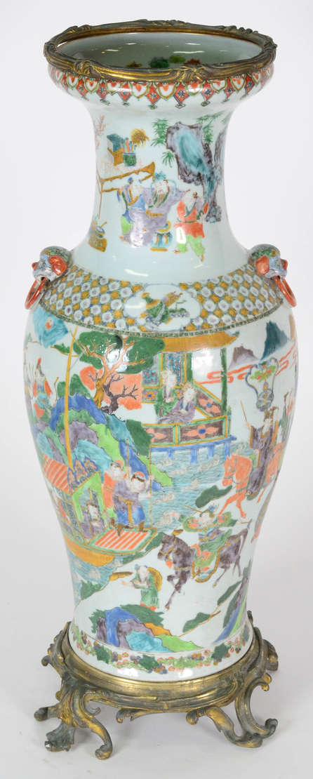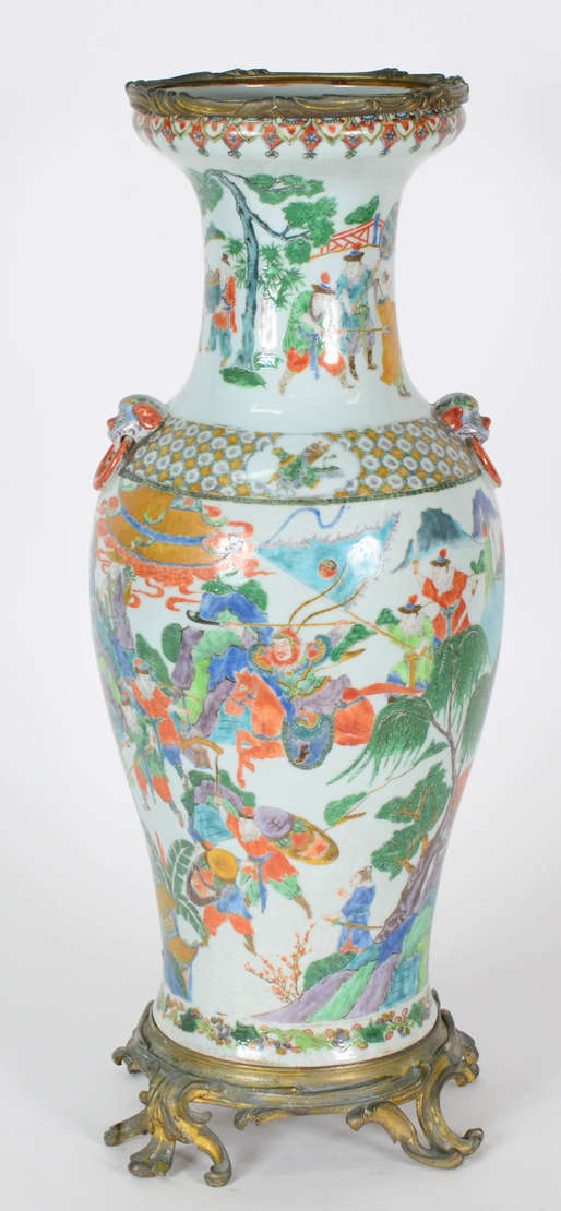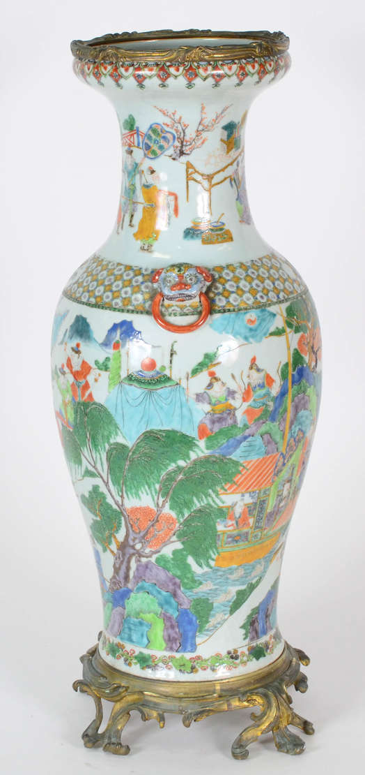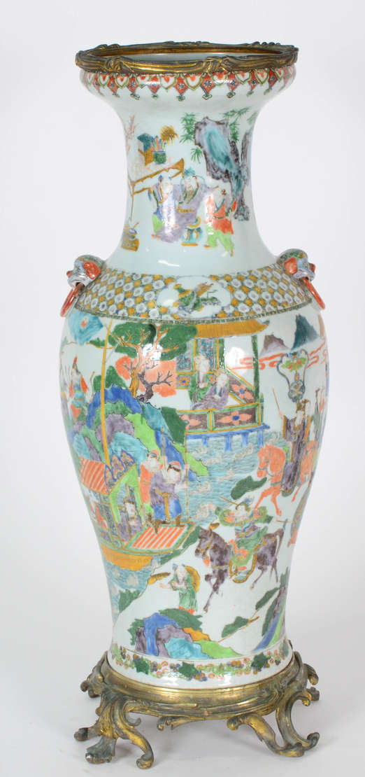 Jarrão Chinês – Porcelana chinesa – Decoração dita Mandarim, nas cores da palheta “Família Rosa” – Com restauro apena...