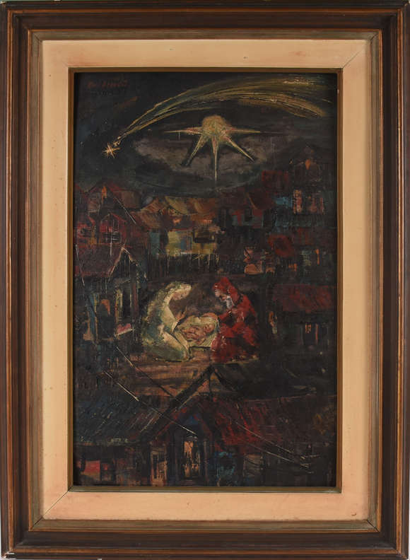 “Natividade” com a Sagrada Família, a estrela de Belém e personagens característicos - Brandão, pintor e fotógrafo, ...