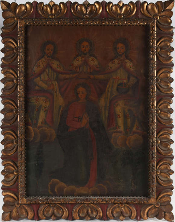 Cuzquenho Original - “Anunciação da Virgem” – Cena do Angelus, com a VIrgem e o Arcanjo S. Miguel e o Divino Espirit...