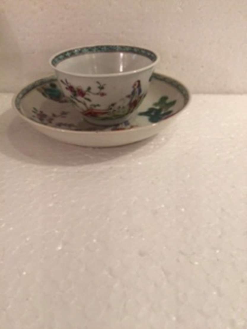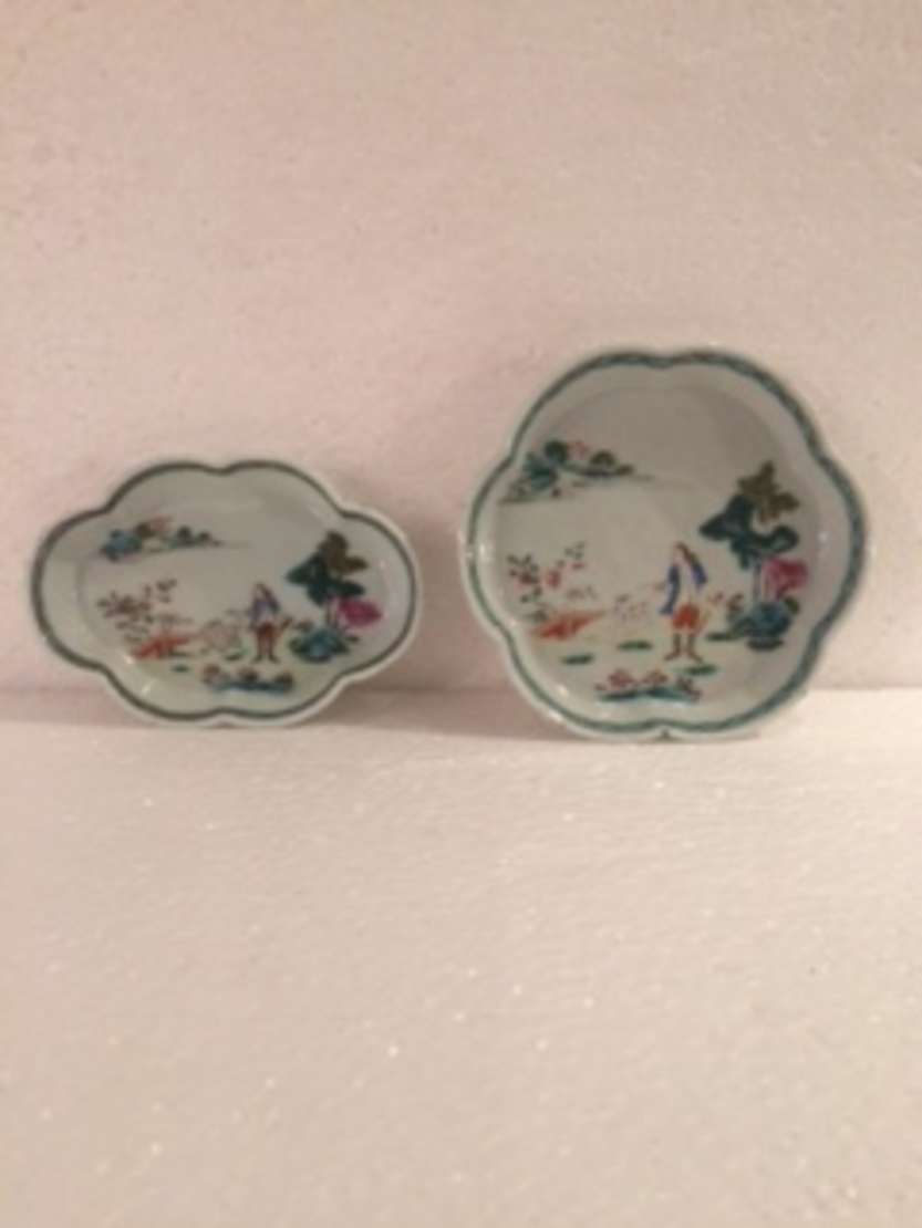 Cia. das Índias – Covilhete e presentoir – Decoração dita “dos pastores”, com figura masculina com trajes europeus em...