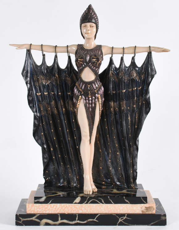 Estatueta de resina policromada, estilo ART DECO ,representando figura feminina - Reprodução.