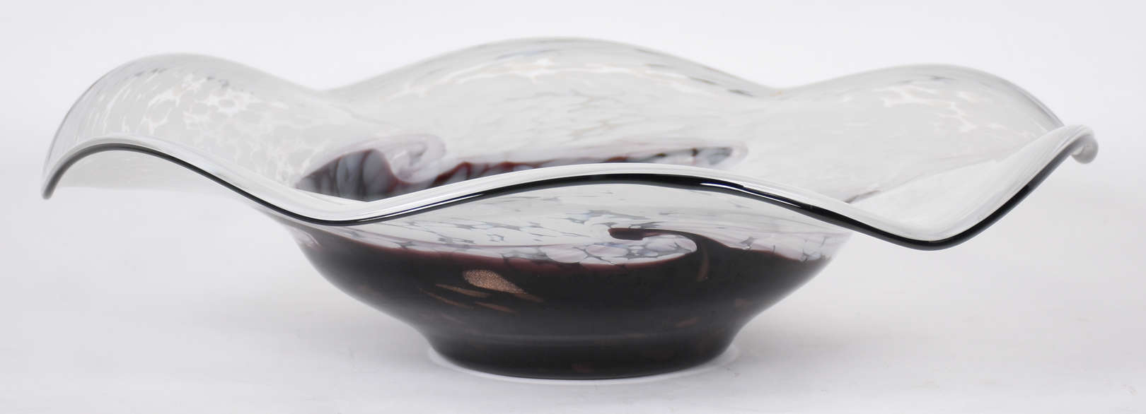 Duas peças, sendo uma vaso de Murano com detalhe na cor vinho e um bowl de cristal com borda trabalhada em relevo fl...