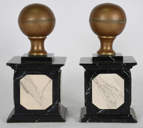 Par de pinhas decorativas com bases de madeira com pintura "marmorizada" ( lascados).