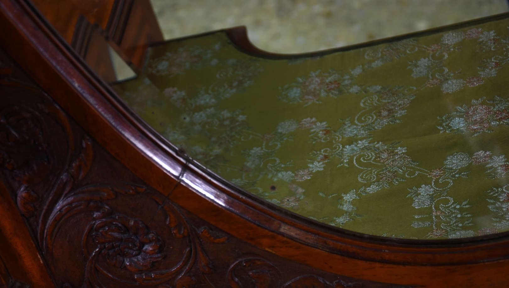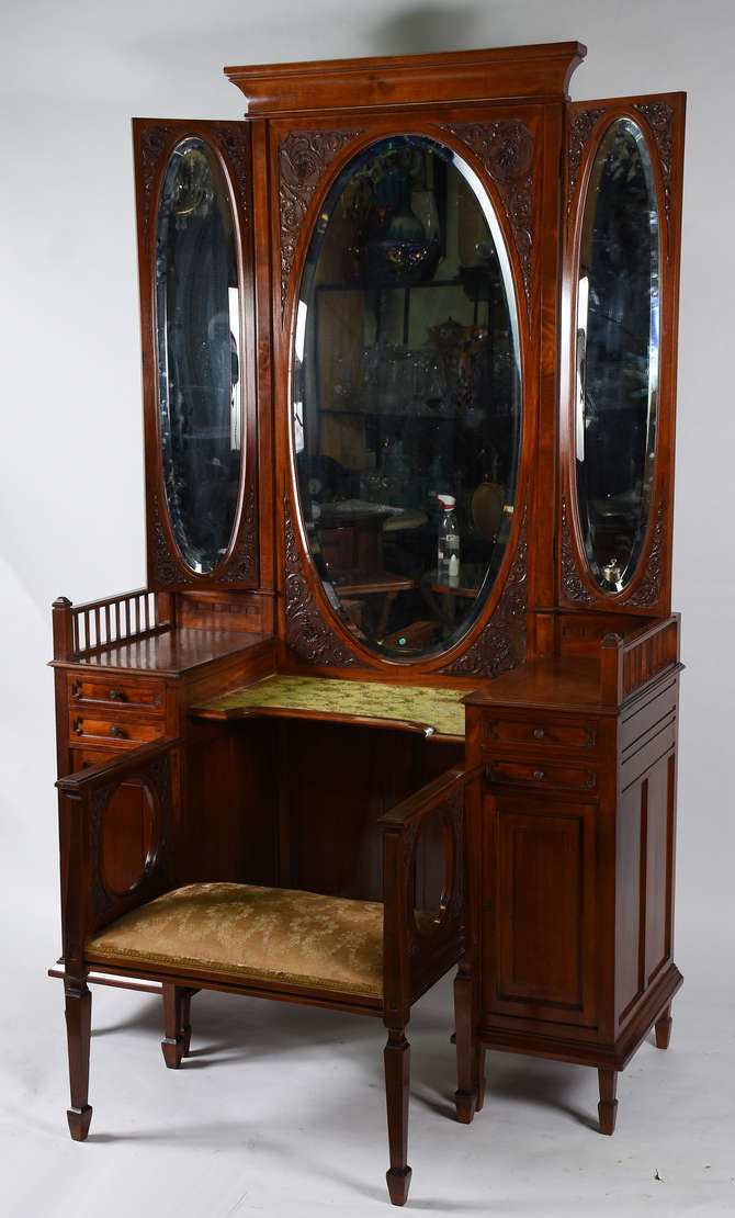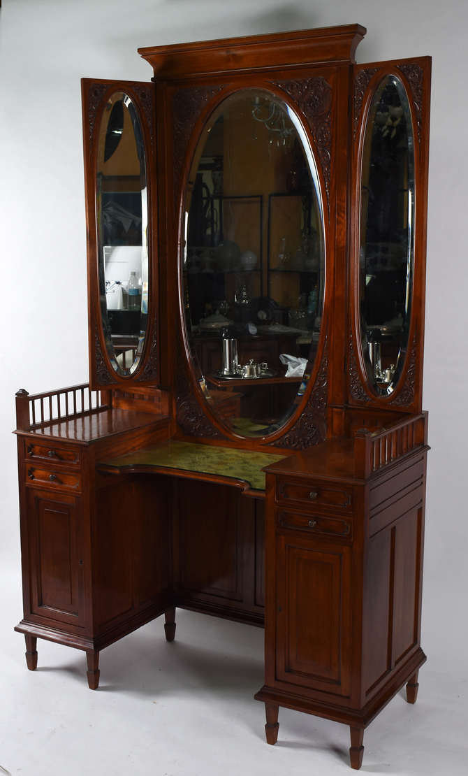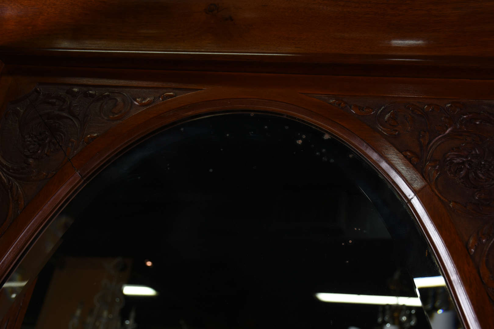 Vitrine patinada alta com vidros bisotados .