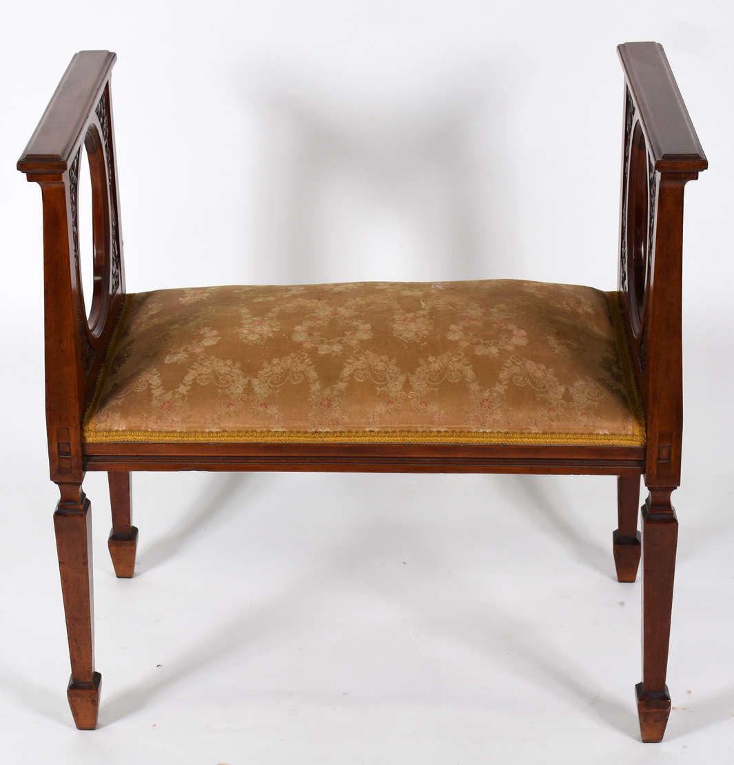 Genuflexório de madeira nobre, estofado e forrado em veludo vermelho .