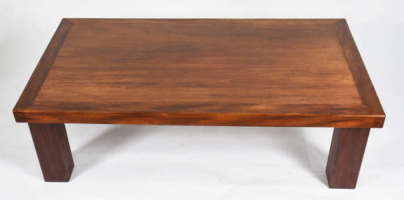 Mesa de centro de madeira nobre, feitio retangular, pernas retas.