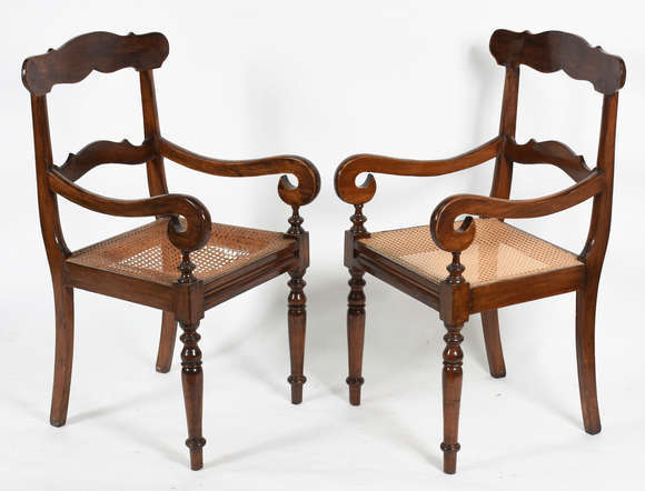 Par de cadeiras de madeira nobre com assentos de palhinha, pernas frontais tornedas ( uma delas com palhinha rasgada,...