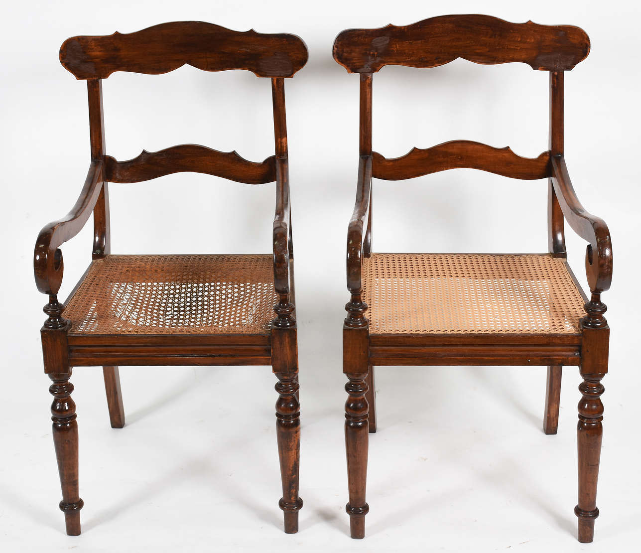 Três cadeiras com assento estofado.