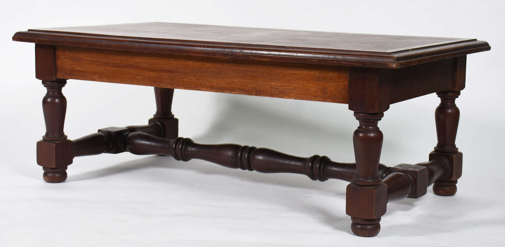 Lote arrematadoLote 4 - Ao vivo! Mesa tilp-top de centro em madeira nobre, feitio oval, pernas torneadas sendo a central articulada para que o tampo t... 44 x 99 x 58 cm