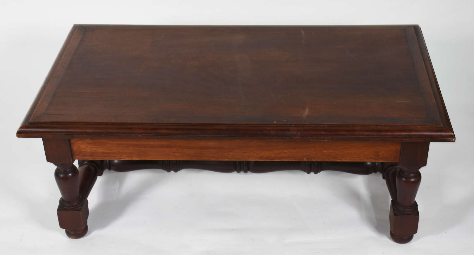 Lote arrematado  Lote 527 - Ao vivo! Mesa de centro com base de madeira e pés de jacarandá, tampo quadrado de mármore rosa rajado. Anos 60. (a parte quadr... 29 x 100 cm