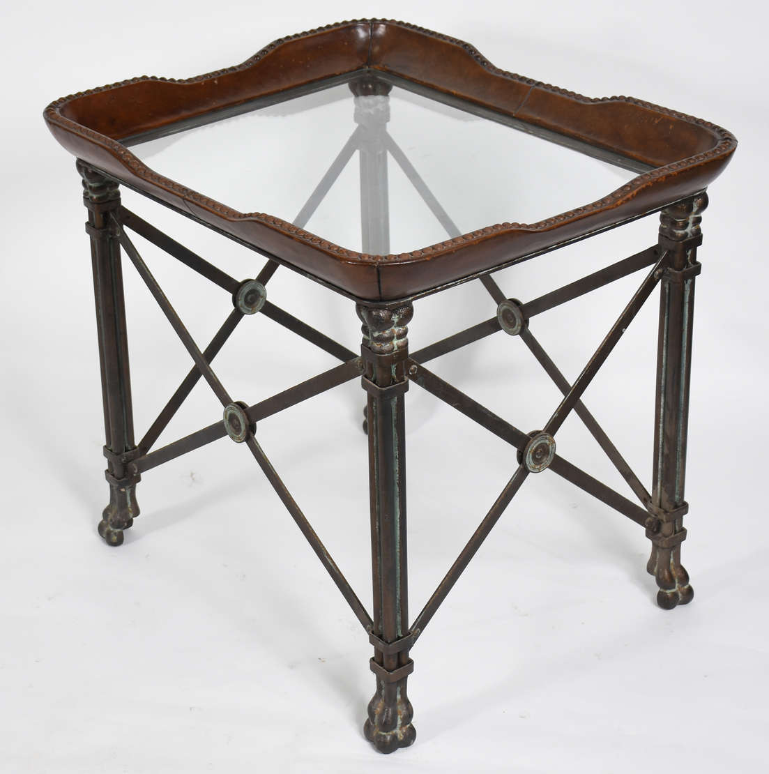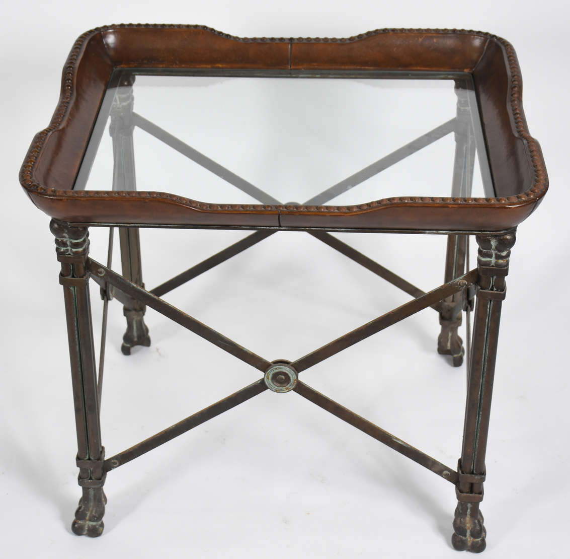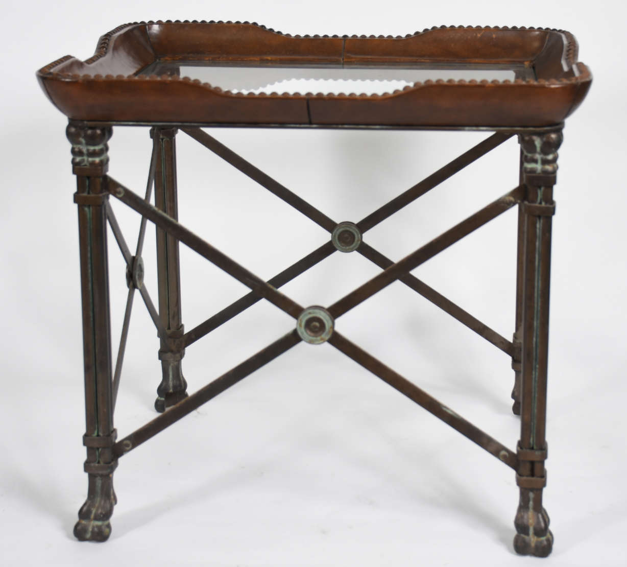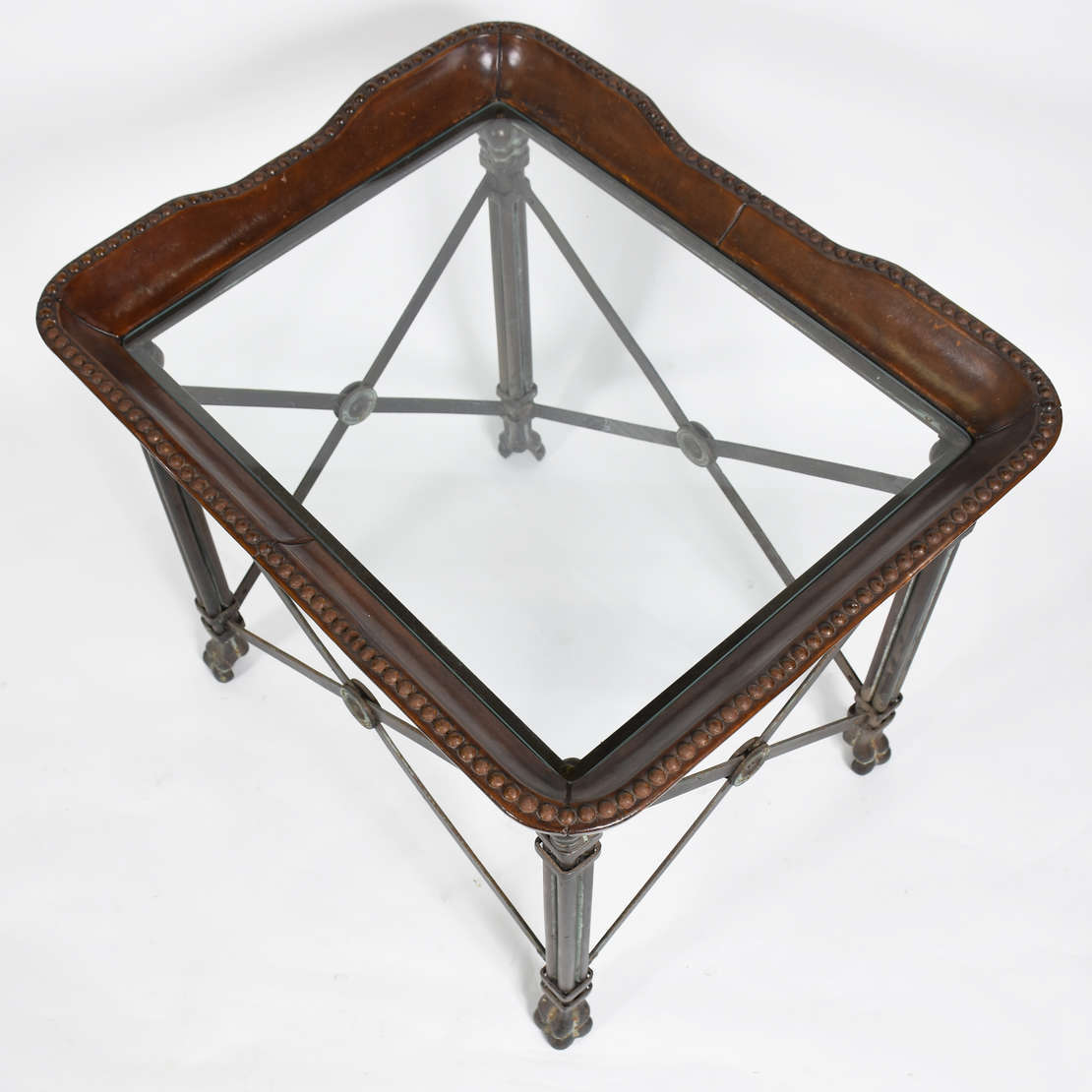 Carrinho de chá de madeira nobre, platô superior de vidro e inferior de madeira recoberto com vidro . Detalhes de met...