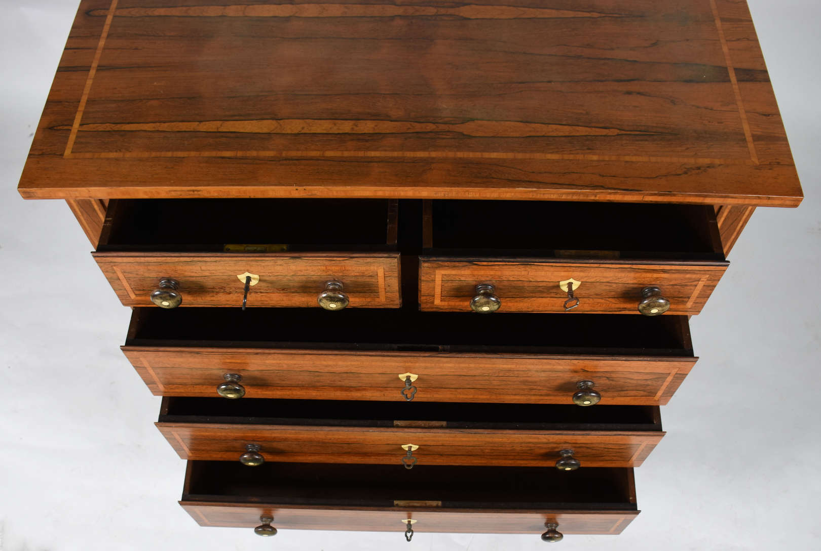 Cômoda escrivaninha de madeira nobre, dois gavetões e duas gavetinhas, tampo articulado, escaninhos e gavetinhas inte...