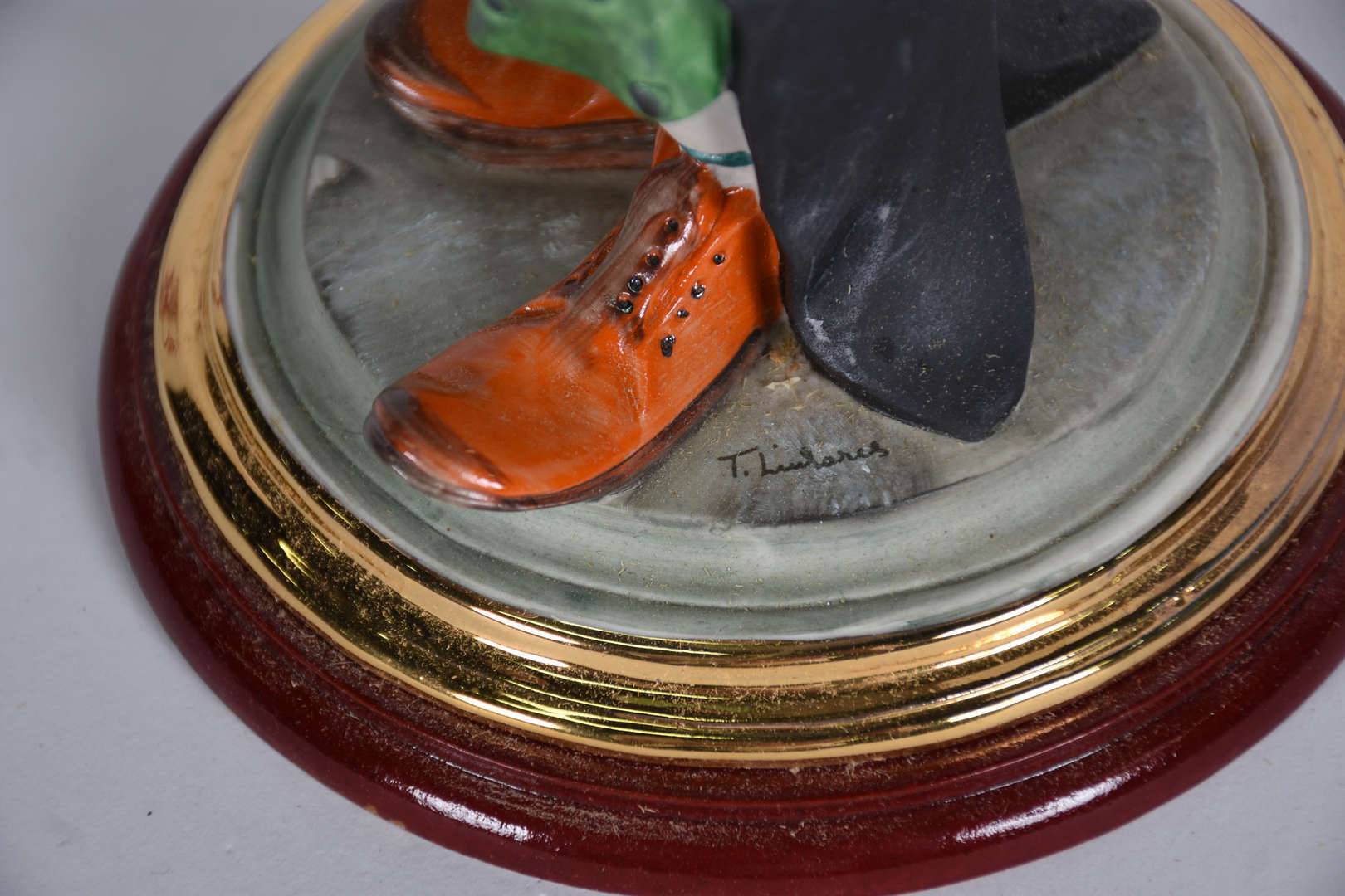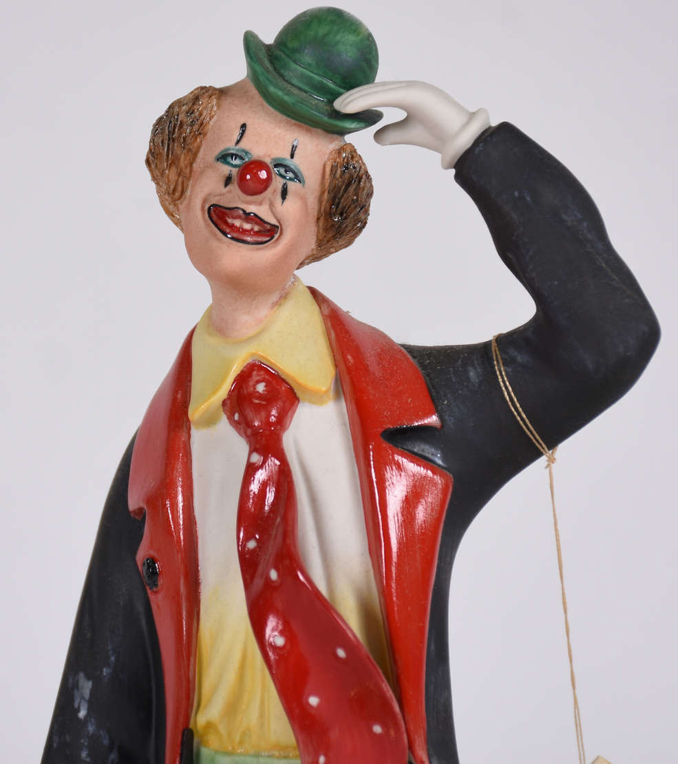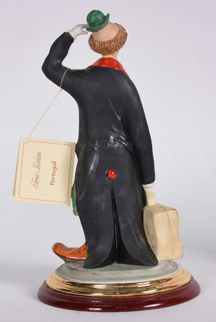 Tres estatuetas, sendo duas Italianas de porcelana representando "Palhaço" e "dançarina", e uma de vidro tcheco re...