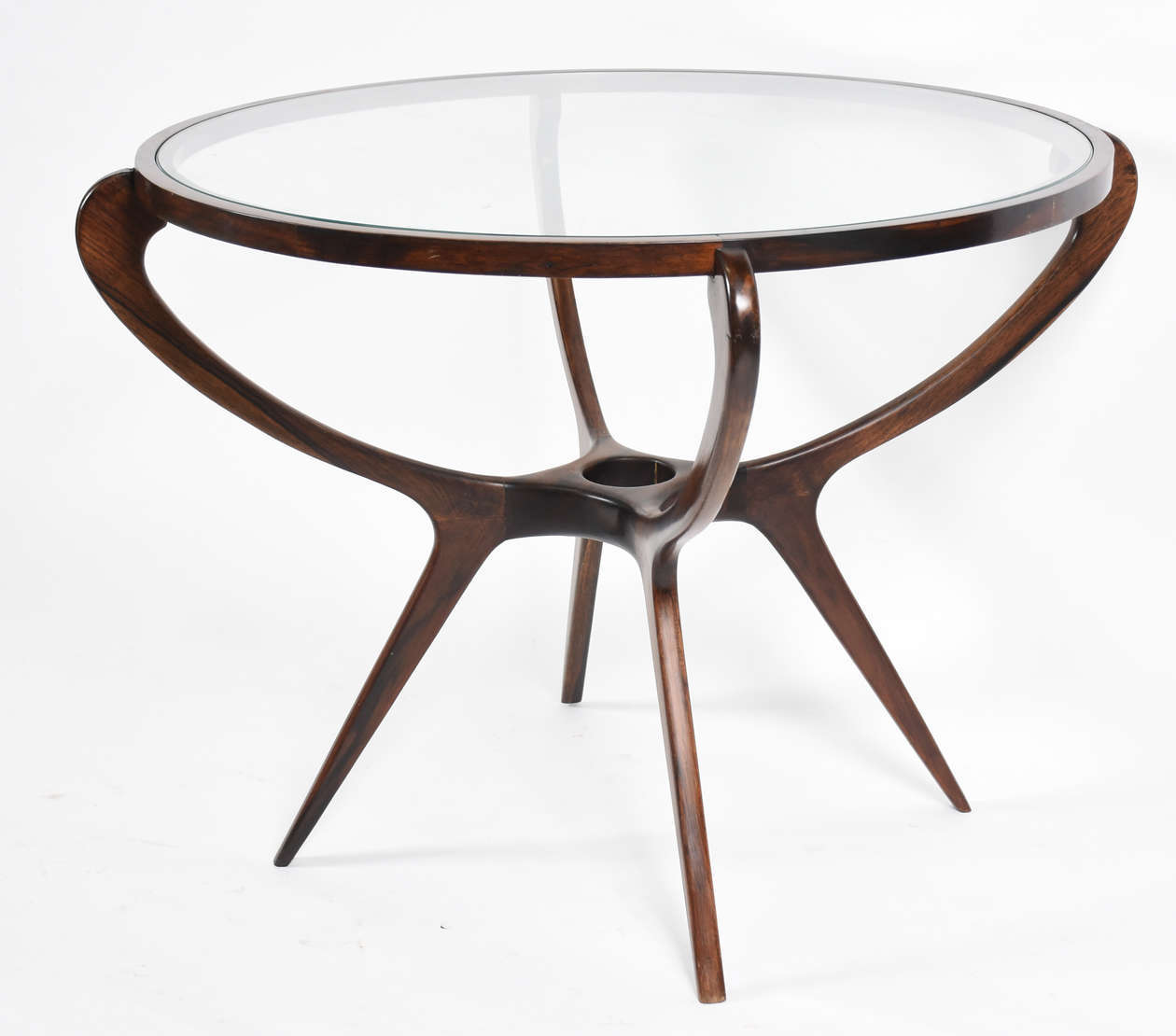 Lote arrematado  Lote 527 - Ao vivo! Mesa de centro com base de madeira e pés de jacarandá, tampo quadrado de mármore rosa rajado. Anos 60. (a parte quadr... 29 x 100 cm