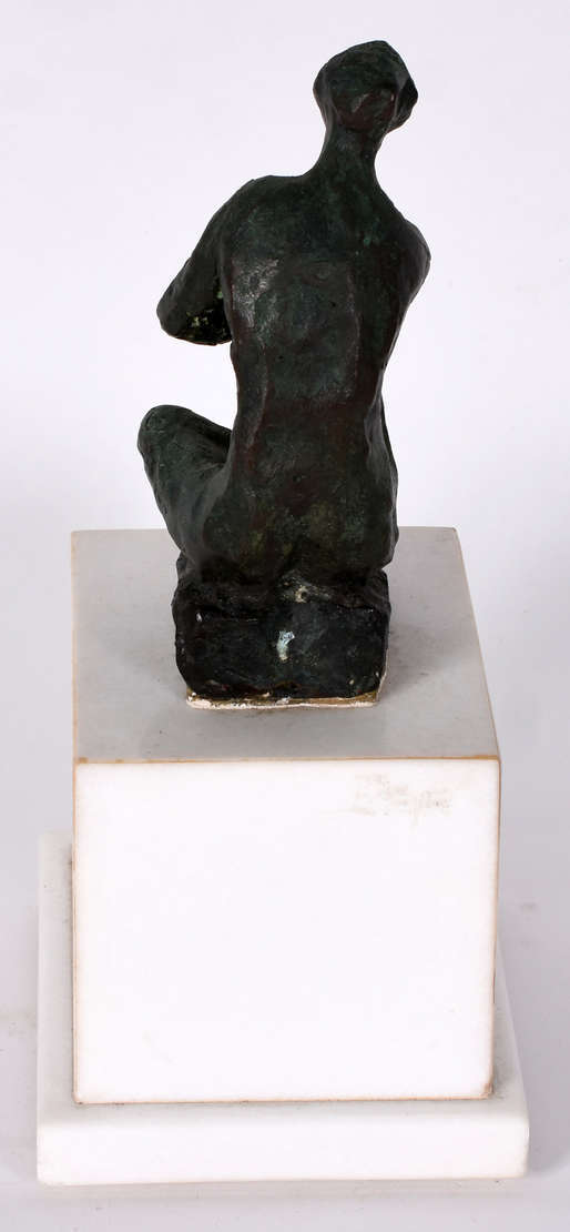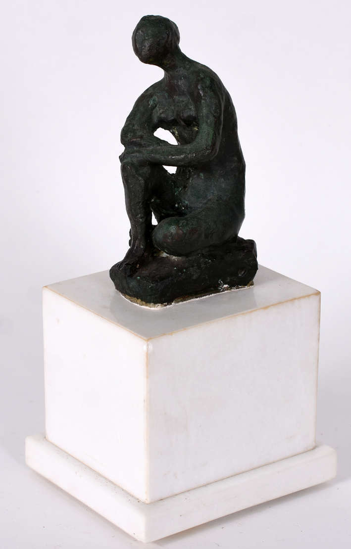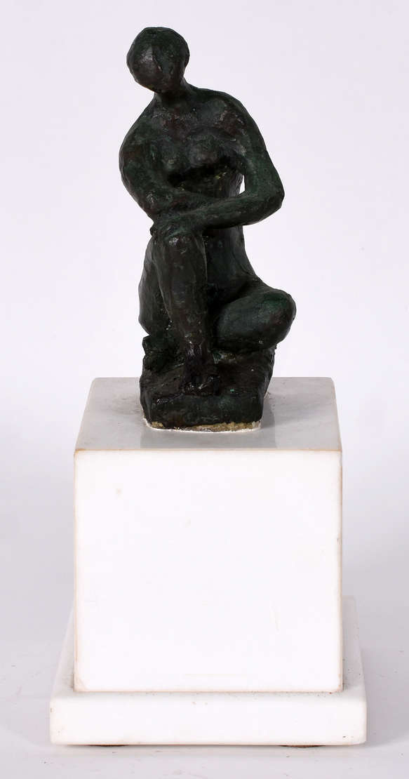 Estatueta de metal e resina policromada representando figura feminina, estilo ART DECO - reprodução ( rachado no braç...